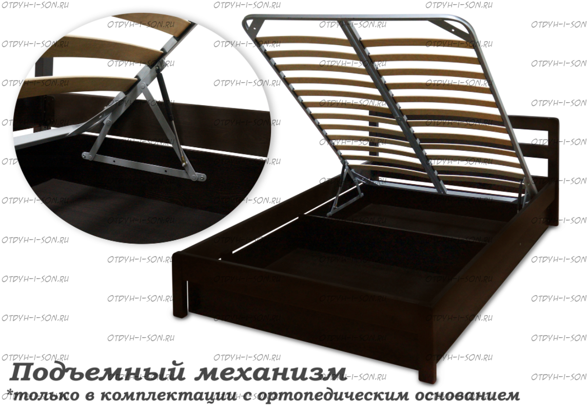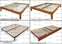 В базовом исполнении основание у кровати - поперечные брусья и лист оргалита. Также можно купить кровать вместе с ламельным основанием от Фабрики ВМК Шале и выкатными ящиками. Выкатные ящики сделают кровать еще более функциональной. Они не закрепляются в кровати и поэтому могут выполняться открыванием в любую из сторон кровати. Ламельные основания от фабрики ВМК Шале изготавливаются из гнутых ламелей в металлическом основании (4 ножки).