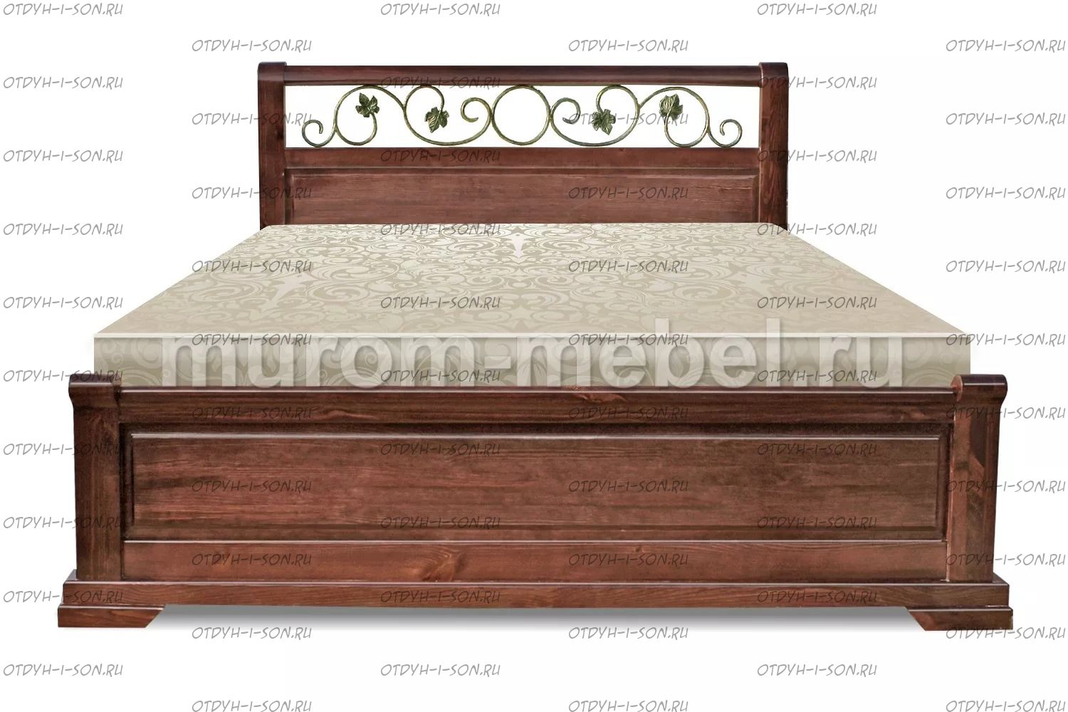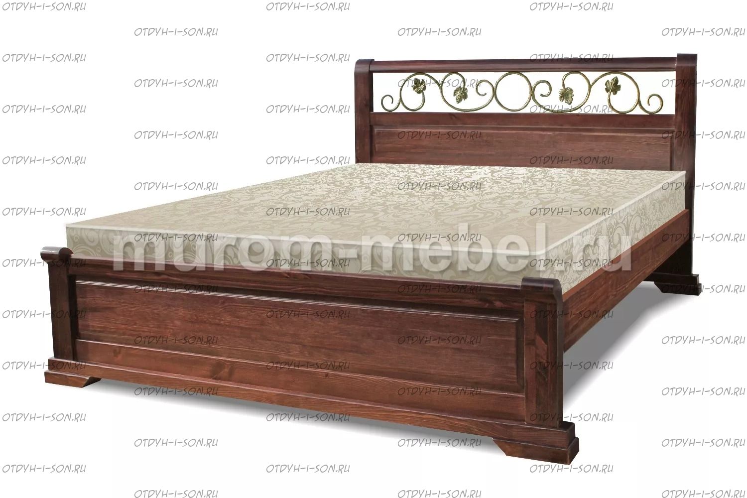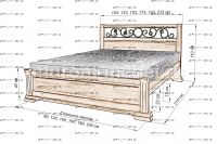 Кровать Эстель с ковкой Характеристики: Размер спального места: 80х190/195/200, 90х190/195/200, 120х190/195/200, 140х190/195/200, 160х190/195/200, 180х190/195/200, 200х190/195/200 см. Комбинированная кровать: Массив сосны и вставки из экологически чистой мебельной фанеры Спинка в изголовье имеет резные элементы с художественной резьбой Габариты кроватей: Высота днища кроватей: Высота от пола до спального места: 22 см. Высота от пола до царги: 17 см. Ширина царги - 16 см., из них 10 см. составляет бортик, который держит матрас, остальные 6 см. под спальным местом, закрывают собой фурнитуру Основание кровати: да, в комплекте Подкроватные ящики: за дополнительную плату Ящики изготавливаются на колесиках и не прикрепляются к кровати, поэтому могут устанавливаться "лицом" к любой из боковых сторон кровати. Высота спинки в изголовье кровати: 110 см, изножье 40 см Крепления кровати: В базовом варианте с тыльной стороны ящиков декоративной планки не предусмотрено. Вес: 45-60кг. Любые размеры, в том числе и нестандартные Цвет: венге 1, венге 2, венге 3, венге 4, венге тон 2, коричневый тон 2, коричневый 1, коричневый 2, коричневый 3, коричневый 4, красно-коричневый тон 2, красно-коричневый 1, красно-коричневый 2, красно-коричневый 3, красно-коричневый 4, лак Изготовление из массива березы плюс 30% Изготовление в белом цвете или слоновая кость плюс 20%