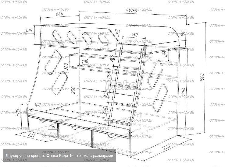 Двухъярусная кровать Фанки Кидз 16 ФМ. Комплектация: Только двухъярусная кровать Фанки Кидз 16 с металлической лестницей Характеристики: Размер спального места: 90х190 и 120х190 Внешние габариты: 1266х1960х1600 Материал: ЛДСП 16 мм (Австрия, Egger). Металлические крепления, европейская фурнитура, кромка ПВХ - 2 мм Рекомендуемая высота матраса на верхний ярус: 10 cм Рекомендуемая высота матраса на нижний ярус: выше 15 cм Цвет корпуса: Ольха, Венге, Орех, Дуб кремона Цвет фасада: Розовый, Оранжевый, Крем ваниль, Салатовый, Дуб кремона, Голубой, Венге, Ольха, Орех Вес: 180 кг Объем: 1м3 Двухэтажная кровать Фанки Кидз 16 разработана для малогабаритной квартиры, ведь наверху может спать ребенок,а на нижнем этаже родители. Безопасность ребенка обеспечивает верхний бортик высотой 30 см. Второй этаж выдерживает нагрузку 80 кг. Нижняя кровать имеет небольшую спинку , что предает кровати дополнительную крепость, а главное защищает стены. Небольшая полочка над спальным местом заменит Вам прикроватную тумбу, ведь на нее можно положить книжку или поставить водичку на ночь. При этом глубина полки всего 20 см, что позволяет Вам не ударится об нее во сне. Три выдвижных ящика на роликах. Если Вы планируете спать внизу с малышом, то можно докупить ,бортик ограничитель, что бы ребенок не упал, когда он будет спать один.