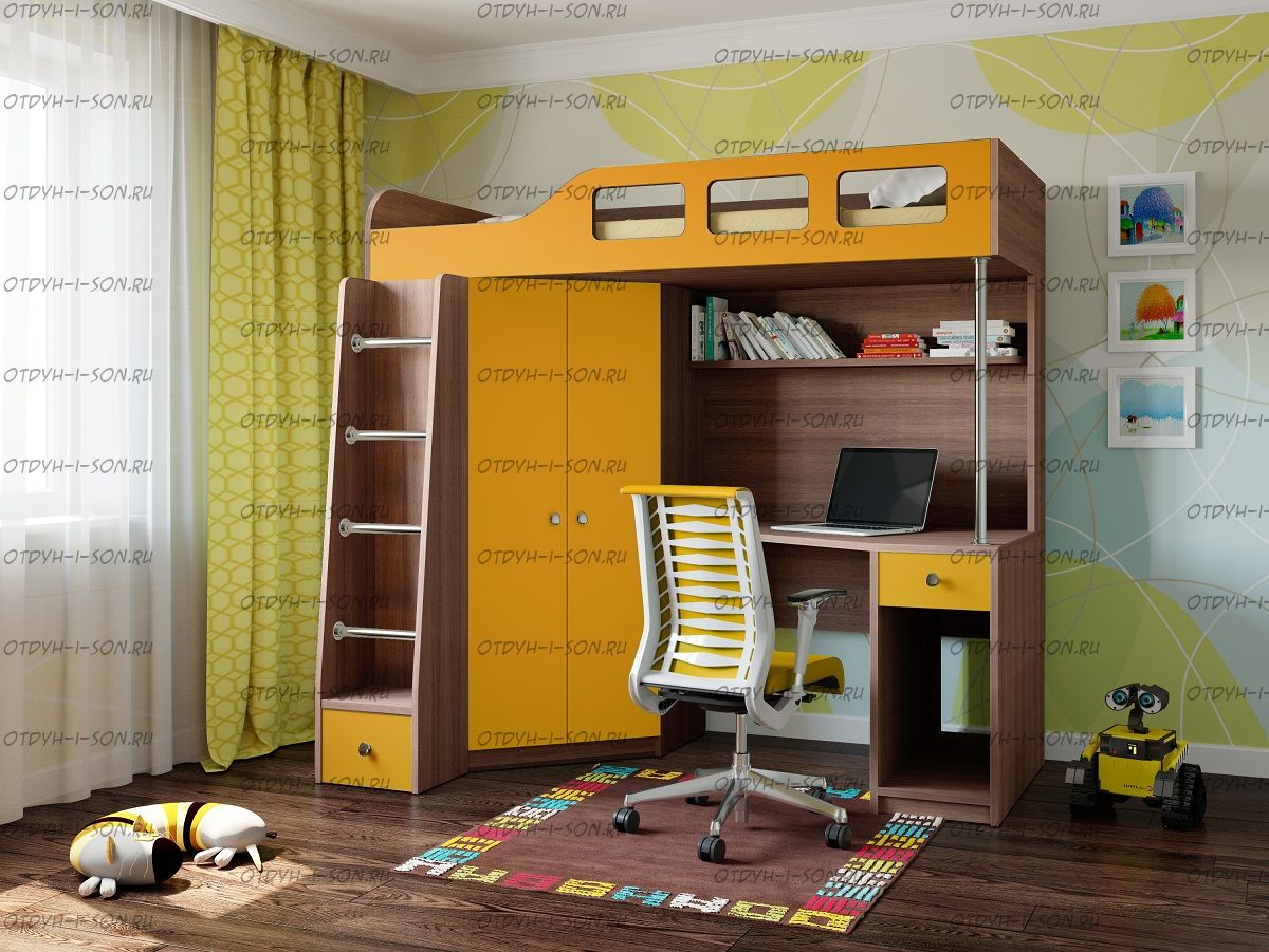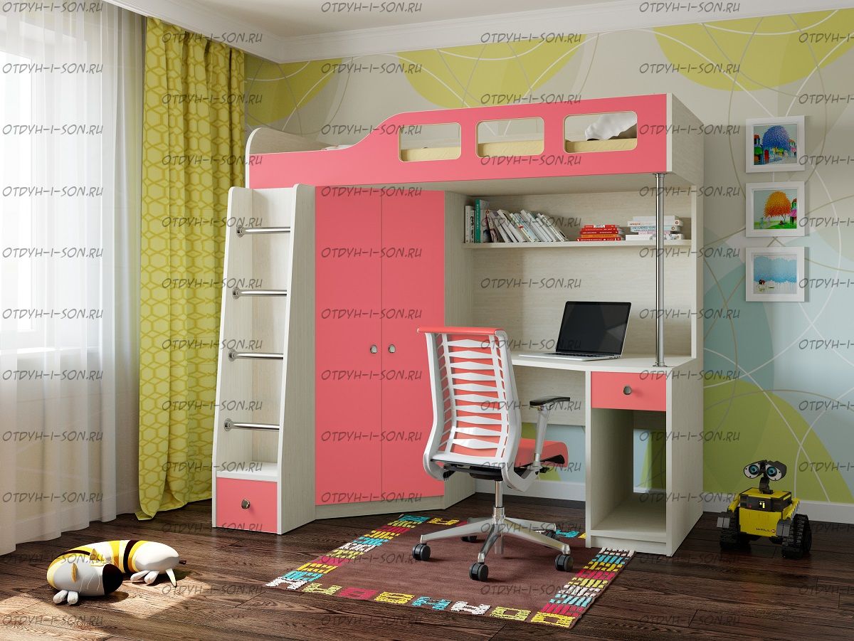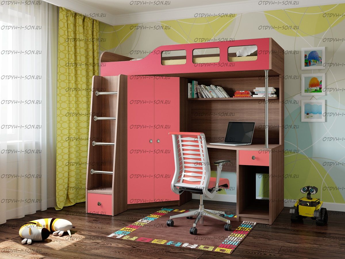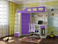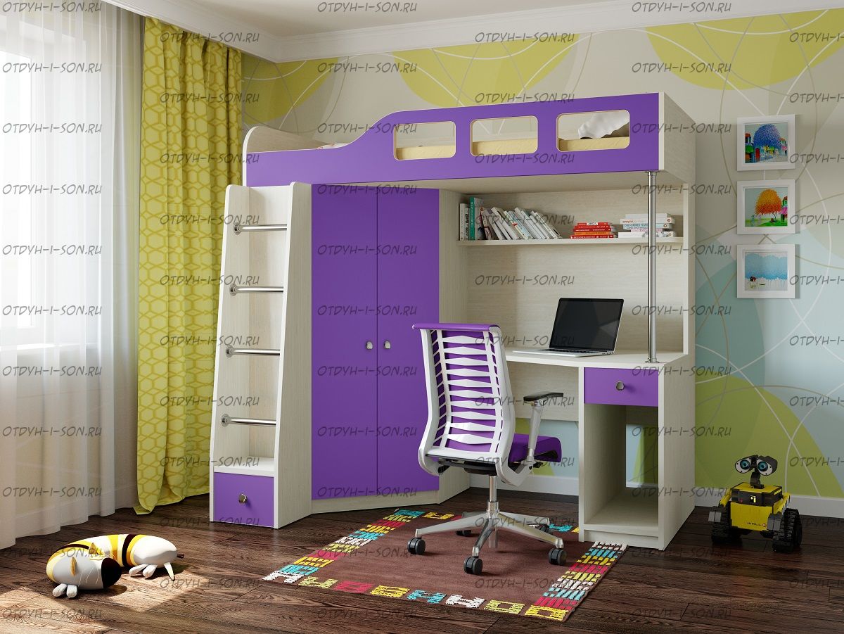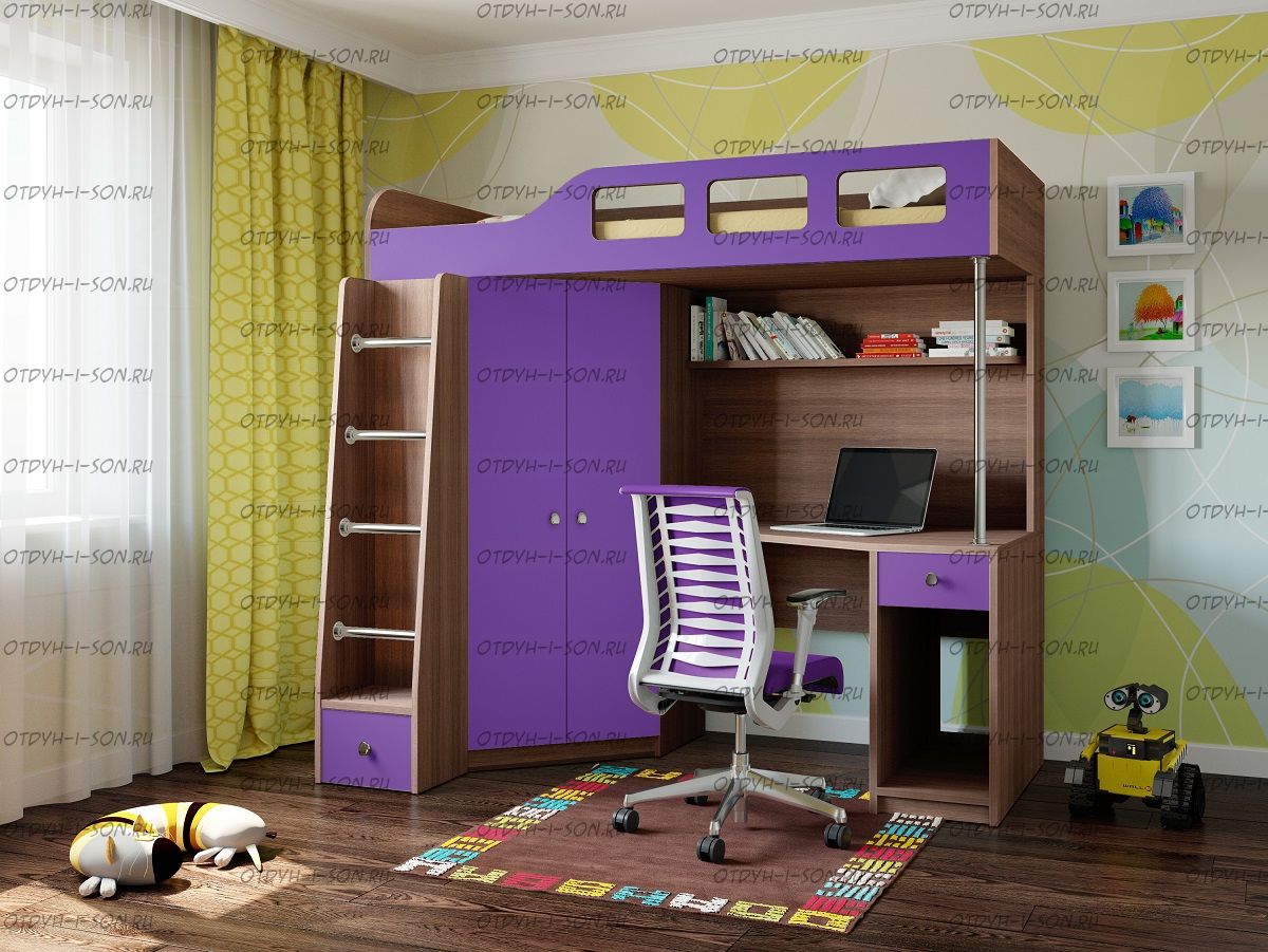 Кровать-чердак Астра-7 Характеристики: Спальное место кровати: 80х195 см. Внешние габариты: 1990х1140х1860 мм. Высота бортиков 30 см (макс. высота матраца 15 см). Матрас в стоимость не входит. Цвет корпуса: Дуб молочный, венге, орех, Дуб шамони Цвет фасада на выбор: Венге, Розовый, Дуб молочный, Орех, Фиолетовый, Дуб шамони, Голубой, Оранжевый, Салатовый, Дуб молочный