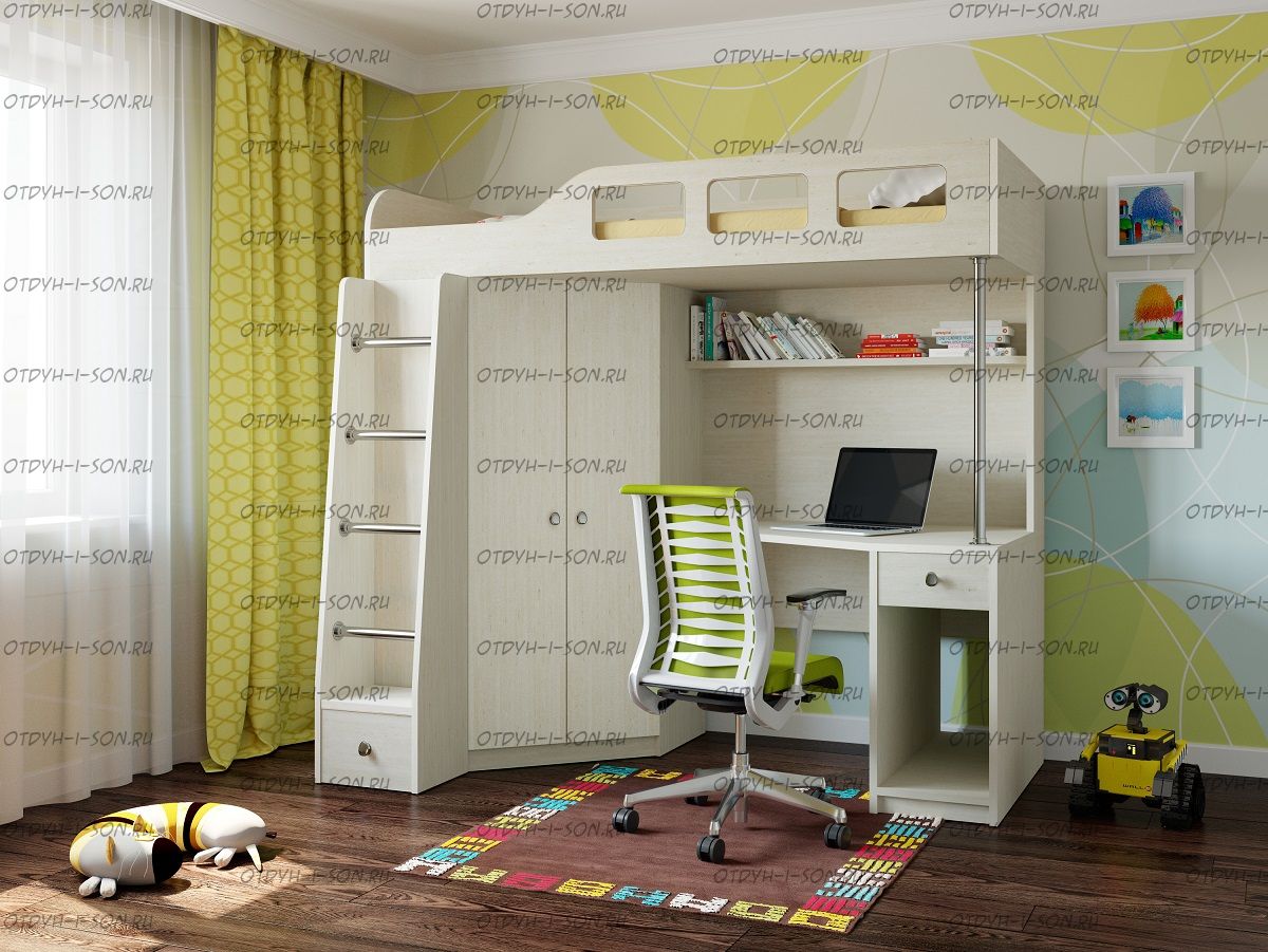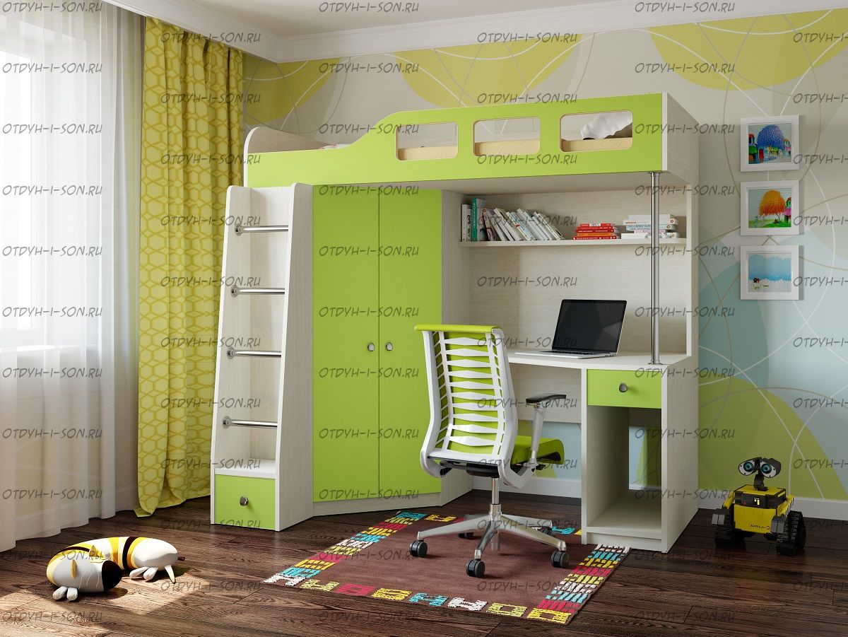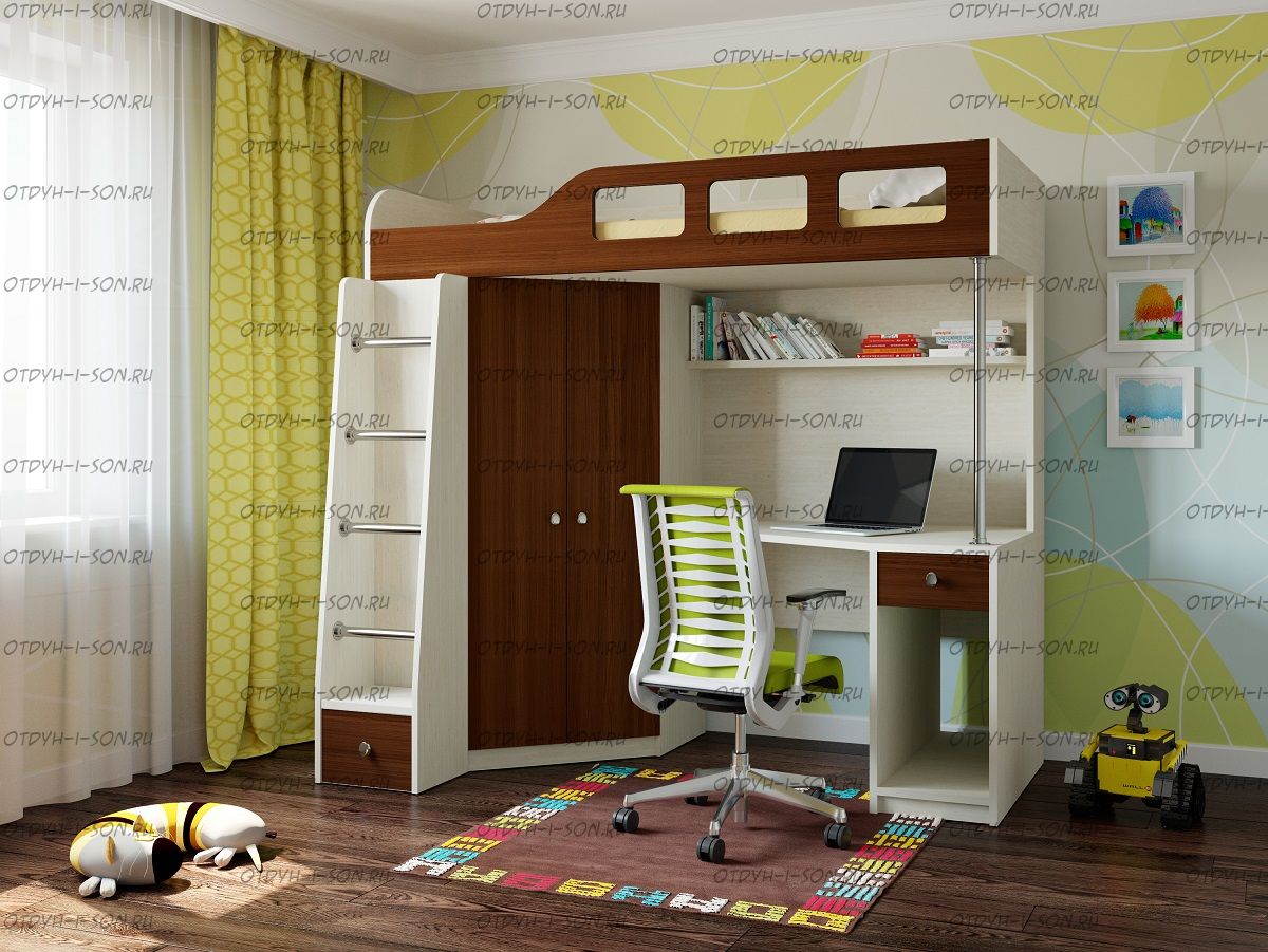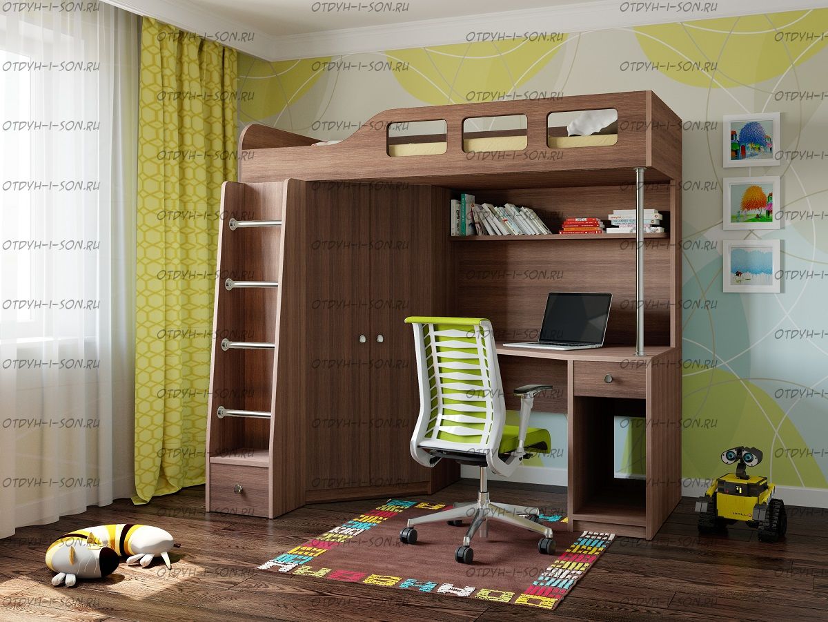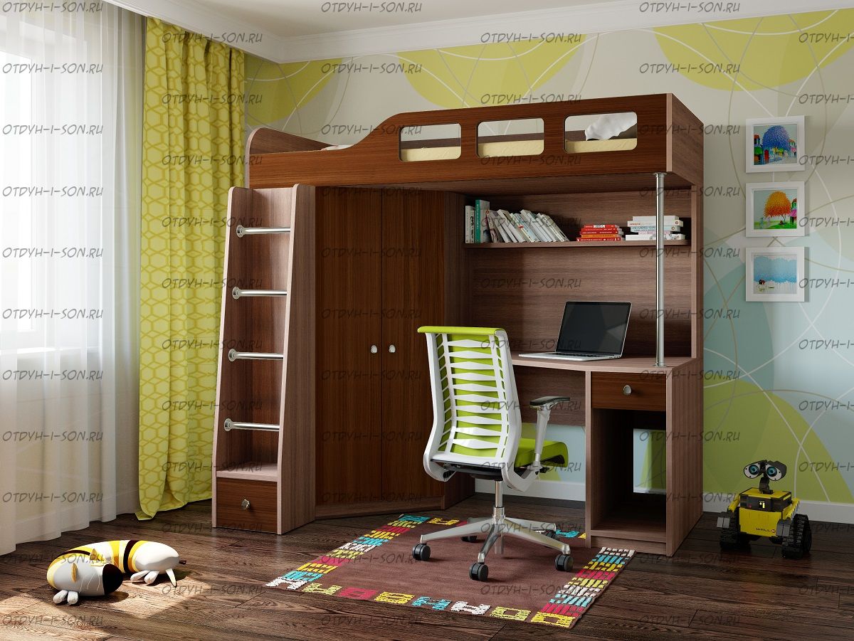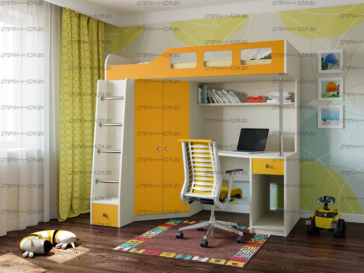 Кровать-чердак Астра-7 Характеристики: Спальное место кровати: 80х195 см. Внешние габариты: 1990х1140х1860 мм. Высота бортиков 30 см (макс. высота матраца 15 см). Матрас в стоимость не входит. Цвет корпуса: Дуб молочный, венге, орех, Дуб шамони Цвет фасада на выбор: Венге, Розовый, Дуб молочный, Орех, Фиолетовый, Дуб шамони, Голубой, Оранжевый, Салатовый, Дуб молочный