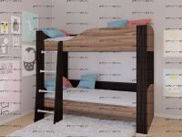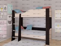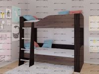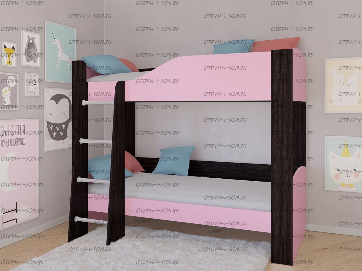 Кровать двухъярусная Астра-2 Характеристики: Спальное место кровати: 80х190 + 80х190 см. Внешние габариты (ШхГхВ): 1100х1934х1550 мм. Большая кровать на 2 ярусе. Высота бортиков 30 см (макс. высота матраца 15 см). Матрас в стоимость не входит. Цвет корпуса: Дуб молочный, венге, орех, Дуб шамони Цвет фасада на выбор: Венге, Розовый, Дуб молочный, Орех, Фиолетовый, Дуб шамони, Голубой, Оранжевый, Салатовый, Дуб молочный