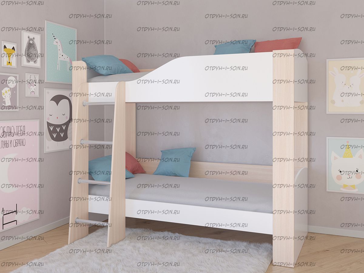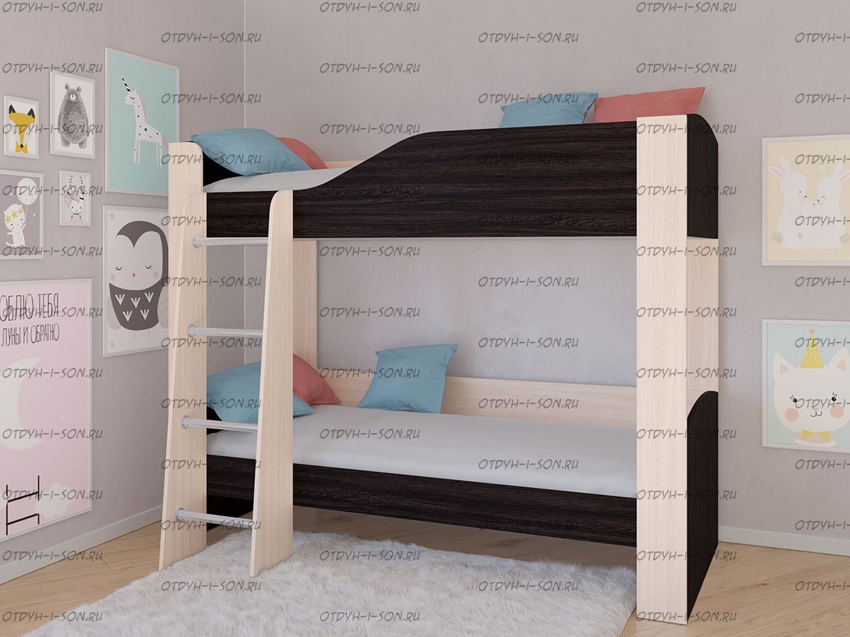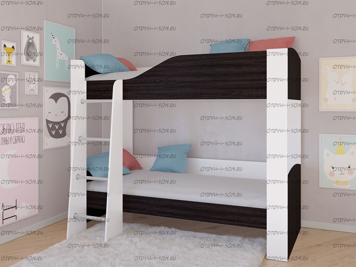 Кровать двухъярусная Астра-2. Детская двухъярусная кровать "АСТРА-2" — это 2 полноценных спальных места для Ваших малышей! Продуманная система хранения, которая есть не в каждой двухъярусной кровати, порадует Вас и Вашего ребенка, а различные цветовые решения помогут вписать эту детскую в любой интерьер.