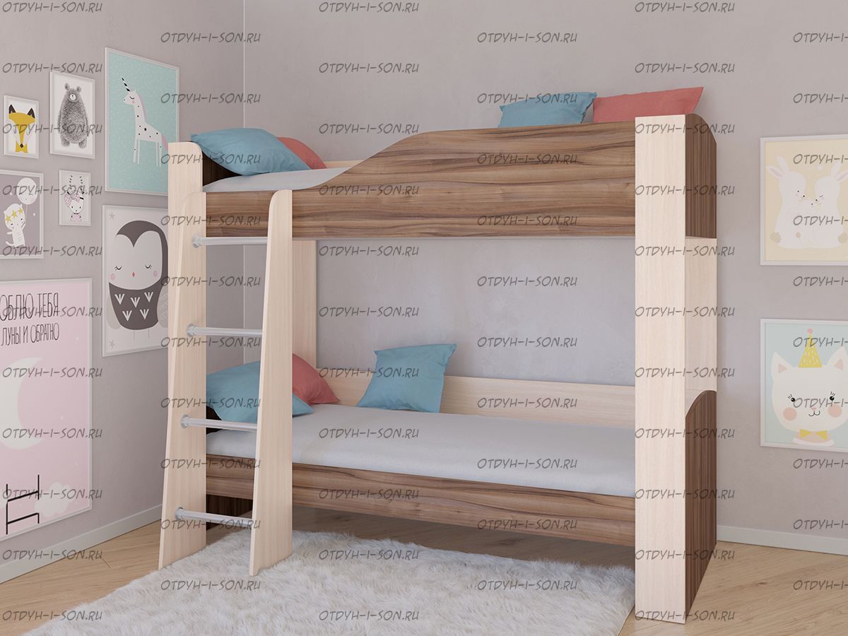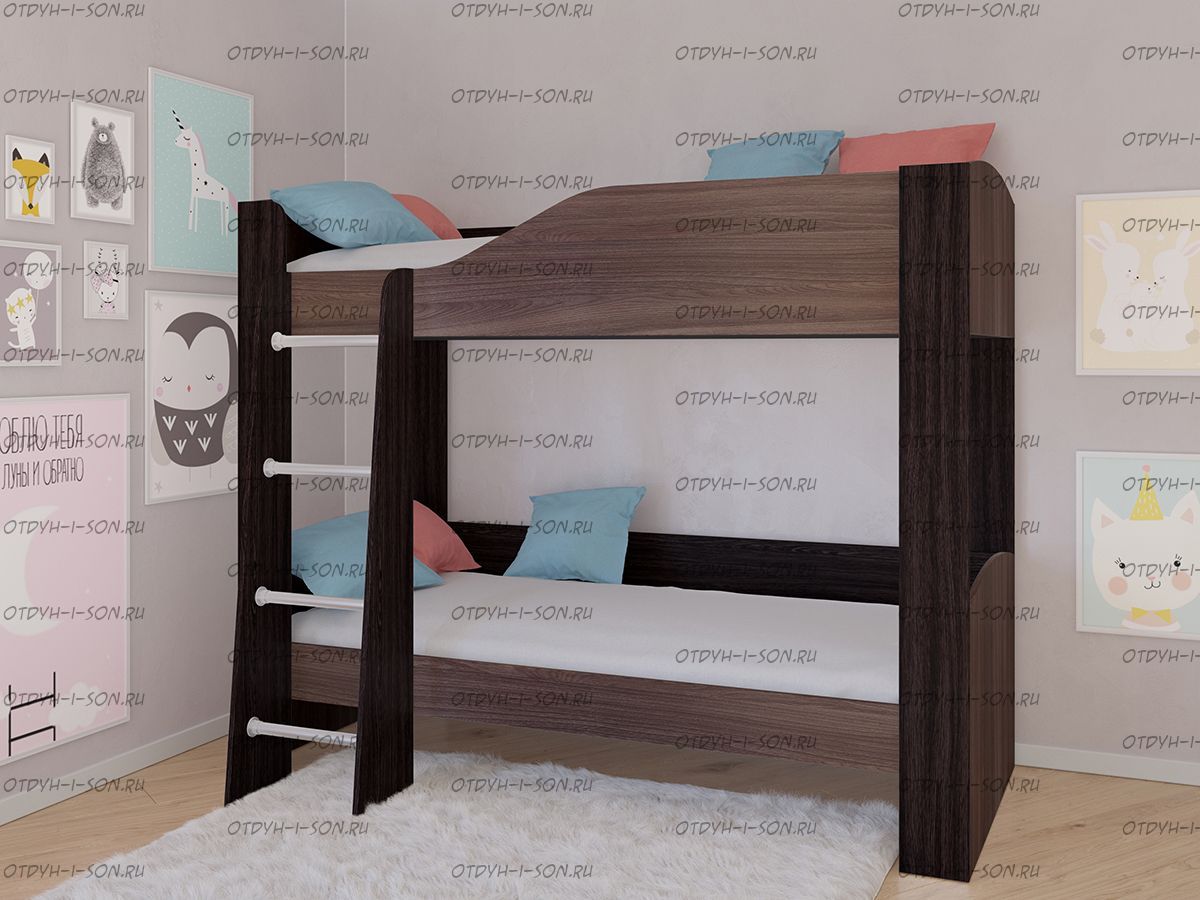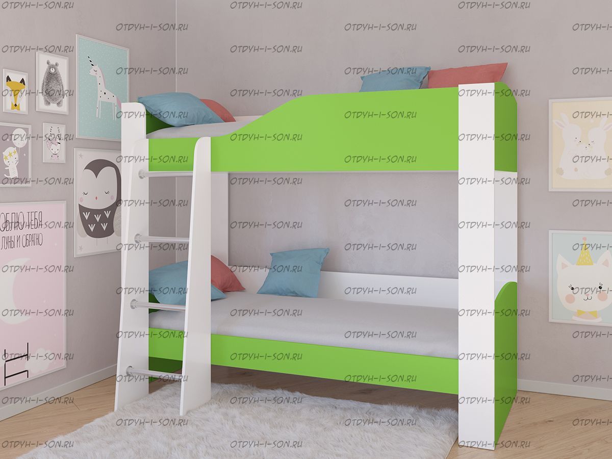 Кровать двухъярусная Астра-2. Детская двухъярусная кровать "АСТРА-2" — это 2 полноценных спальных места для Ваших малышей! Продуманная система хранения, которая есть не в каждой двухъярусной кровати, порадует Вас и Вашего ребенка, а различные цветовые решения помогут вписать эту детскую в любой интерьер.