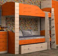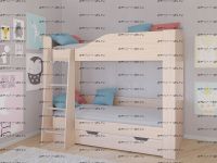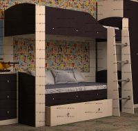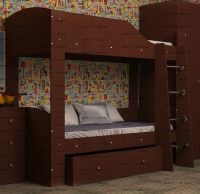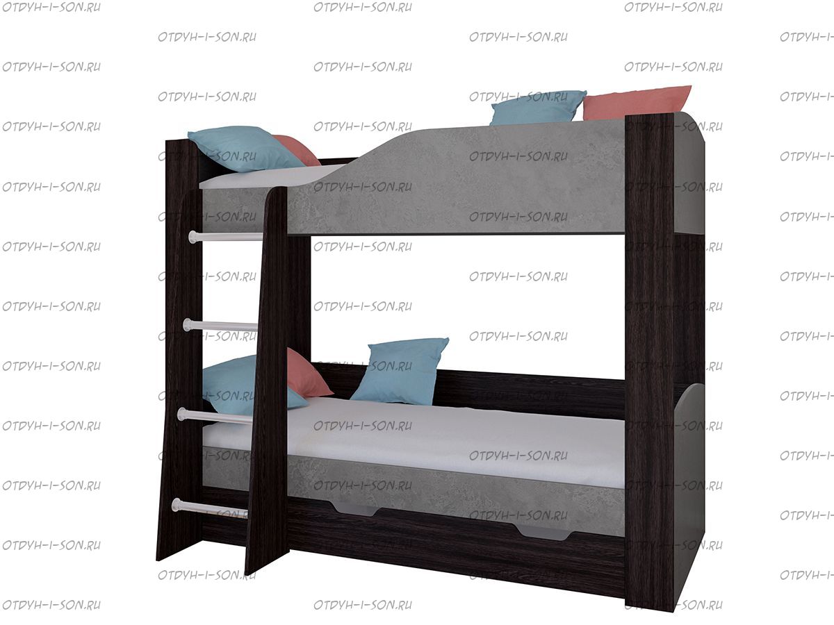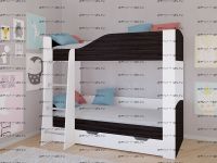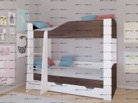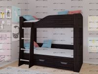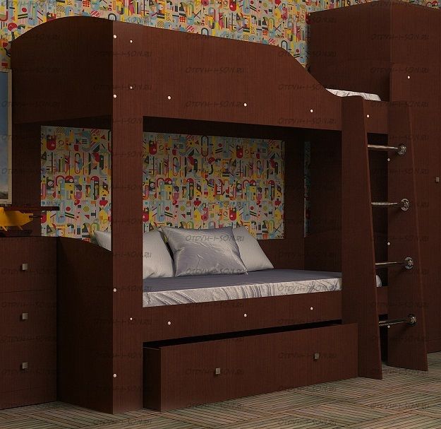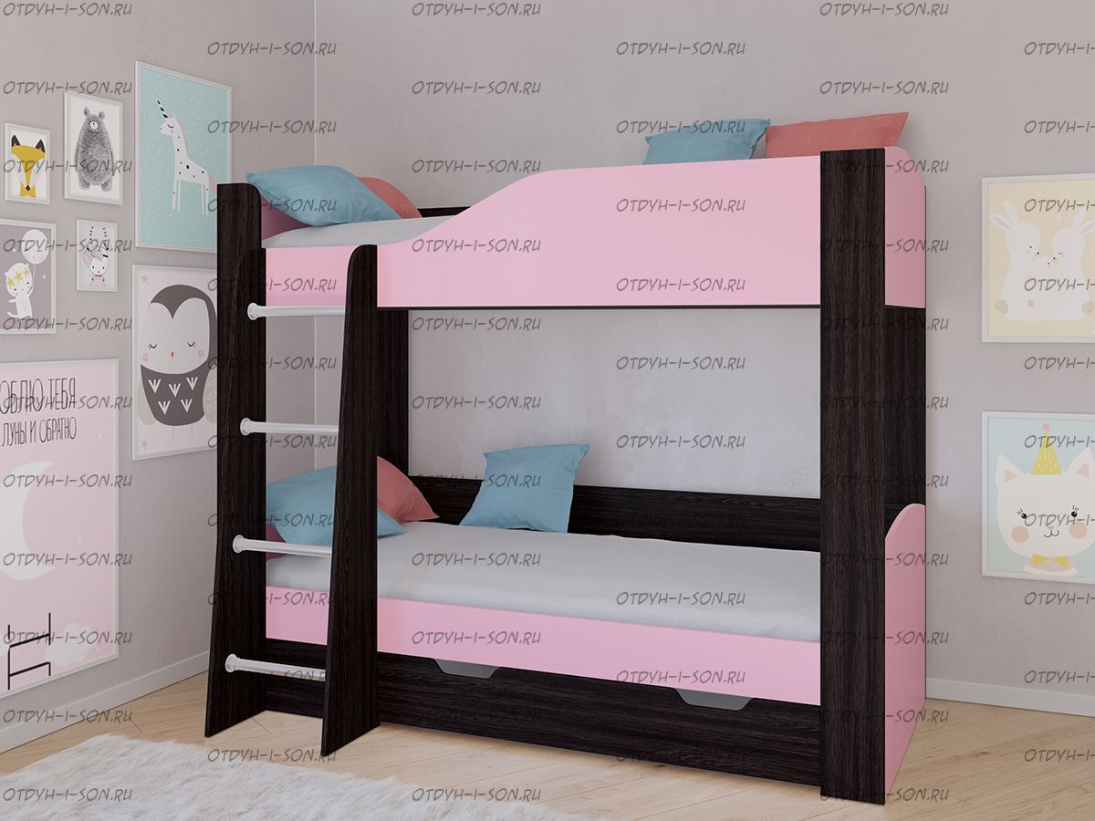 Кровать двухъярусная Астра-2 с ящиком Характеристики: Спальное место кровати: 80х190 + 80х190 см. Внешние габариты (ШхГхВ): 1100х1934х1550 мм. Большая кровать на 2 ярусе. Высота бортиков 30 см (макс. высота матраца 15 см). Матрас в стоимость не входит. Цвет корпуса: Дуб молочный, венге, орех, Дуб шамони Цвет фасада на выбор: Венге, Розовый, Дуб молочный, Орех, Фиолетовый, Дуб шамони, Голубой, Оранжевый, Салатовый, Дуб молочный