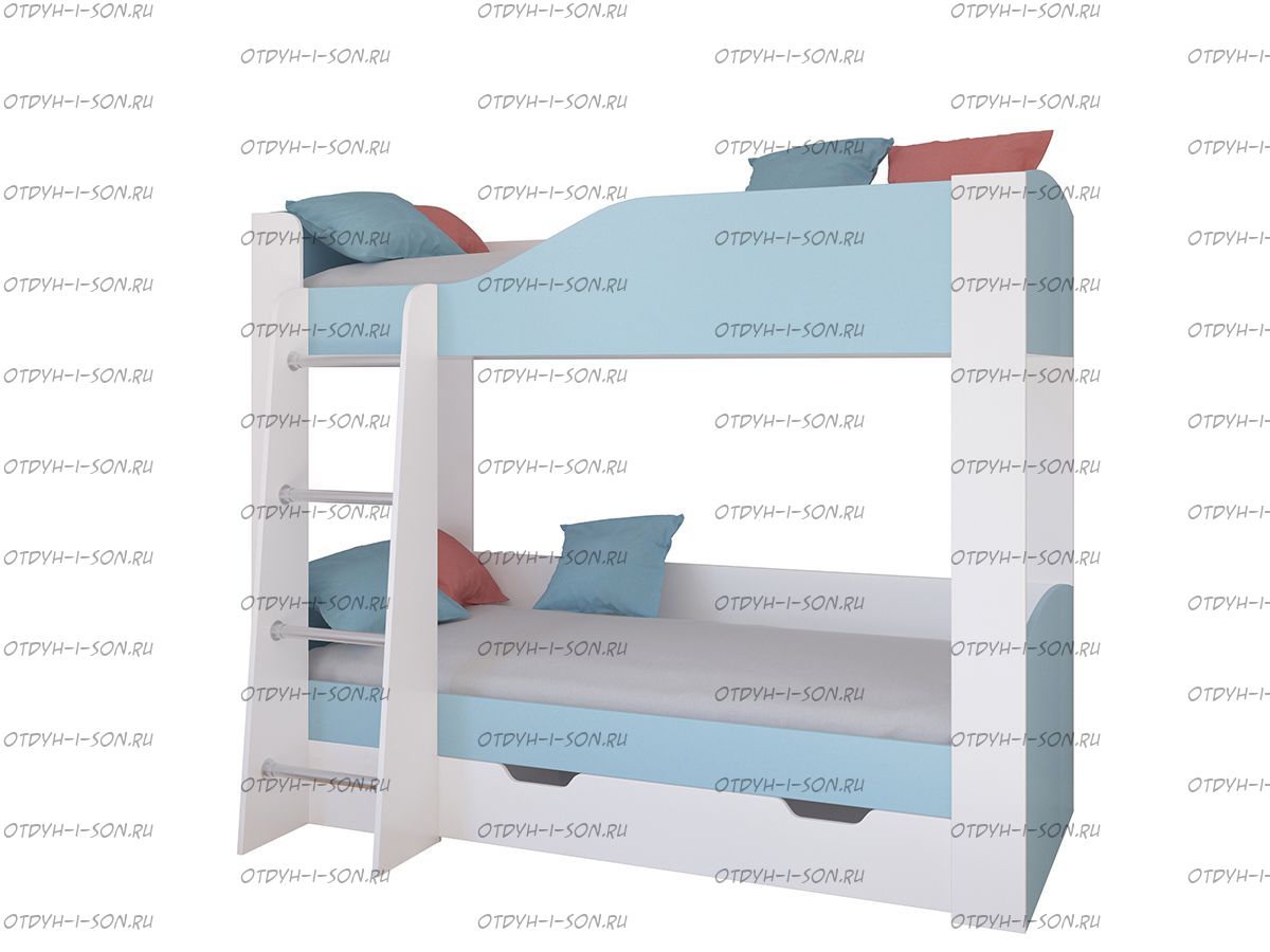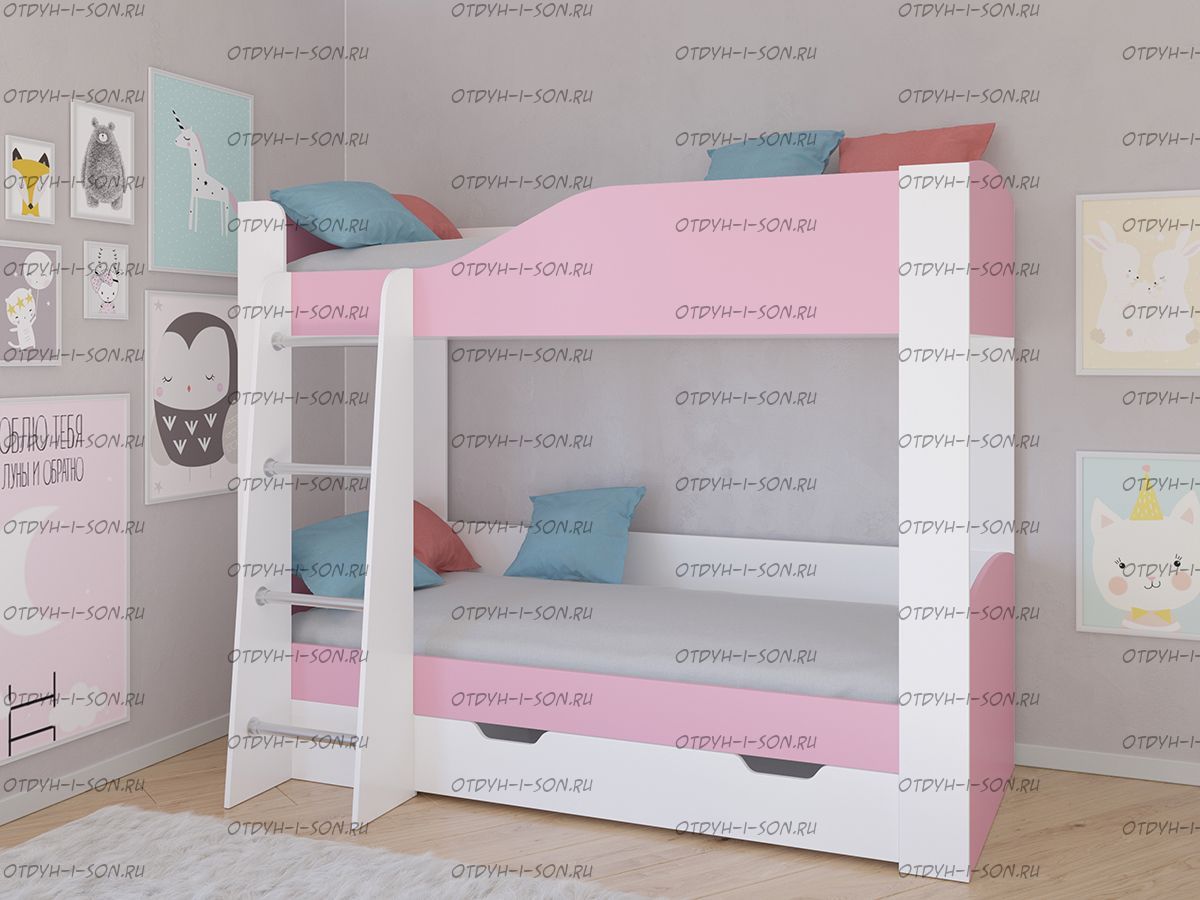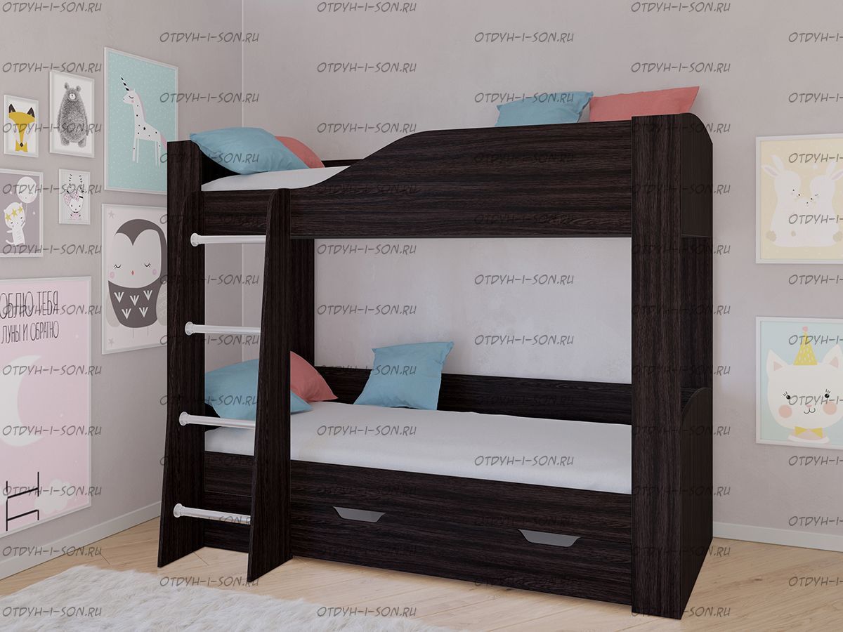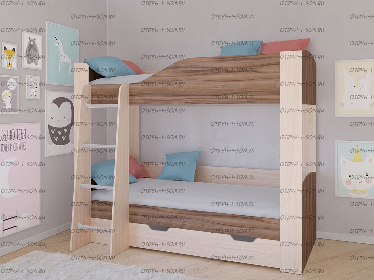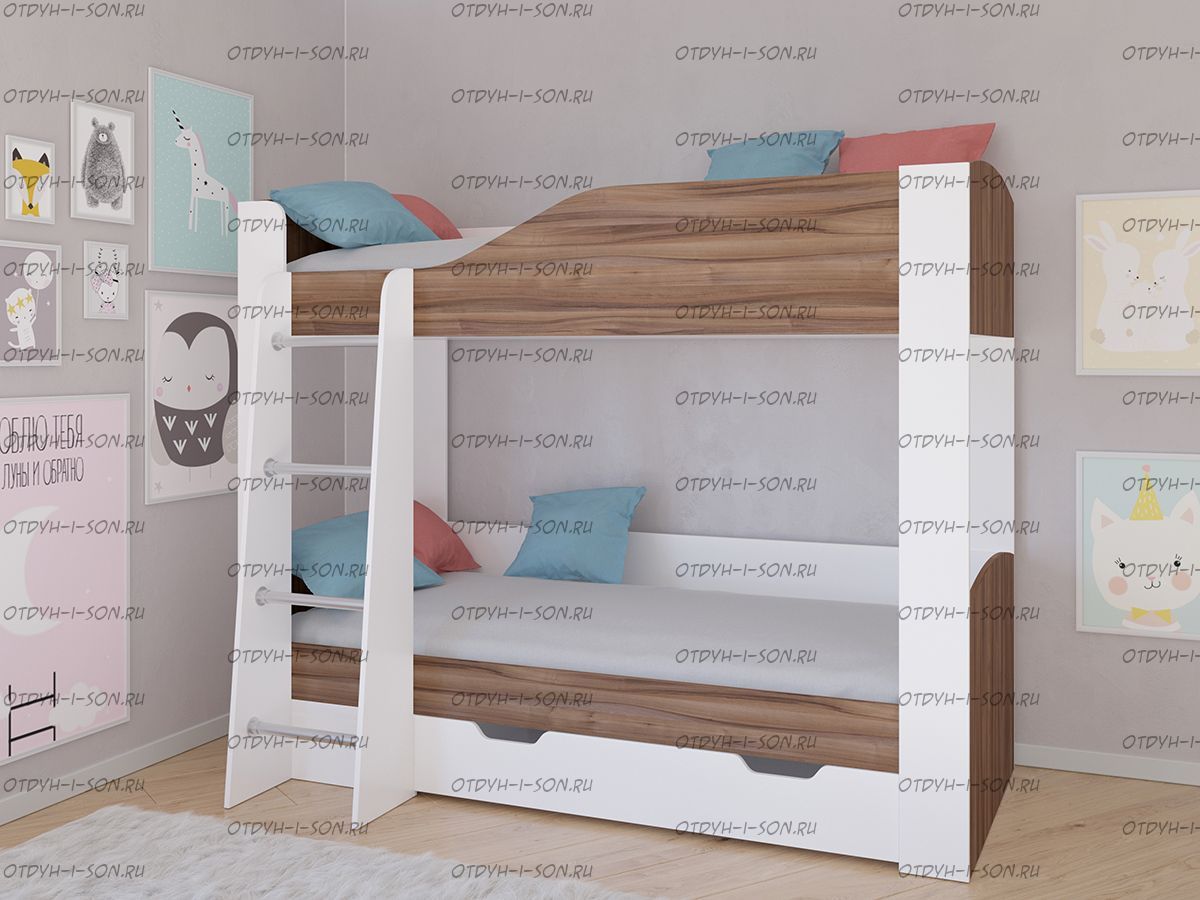 Кровать двухъярусная Астра-2 с ящиком. Детская двухъярусная кровать "АСТРА-2" — это 2 полноценных спальных места для Ваших малышей! Продуманная система хранения, которая есть не в каждой двухъярусной кровати, порадует Вас и Вашего ребенка, а различные цветовые решения помогут вписать эту детскую в любой интерьер.
