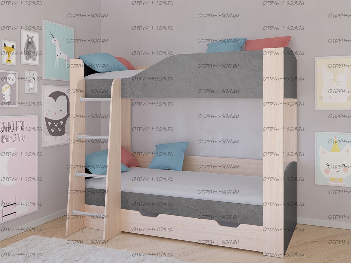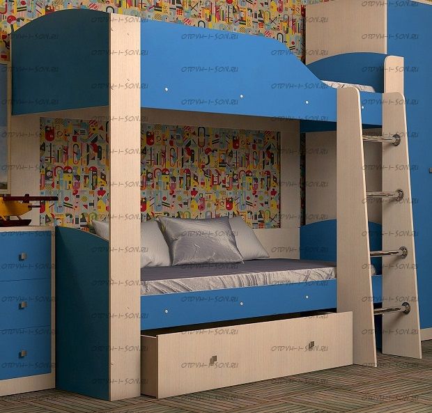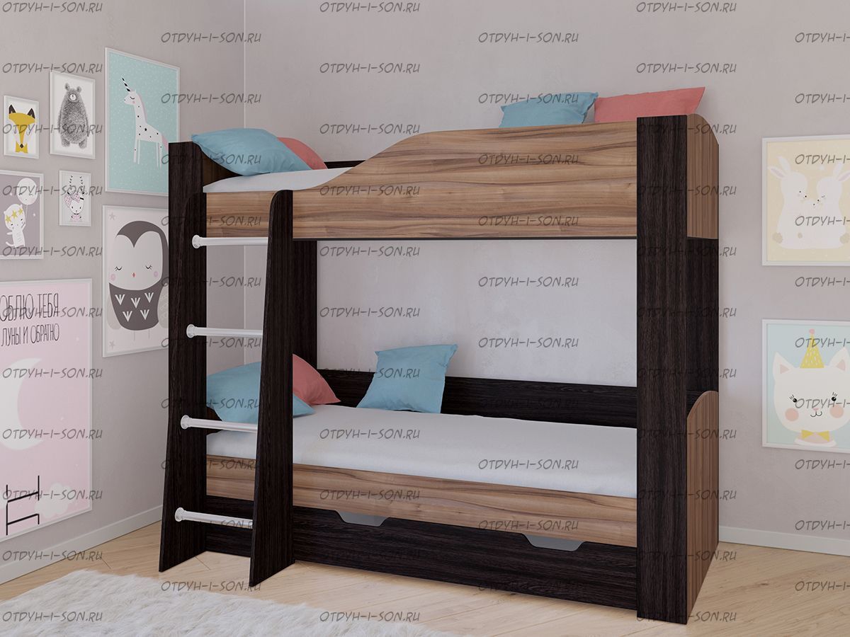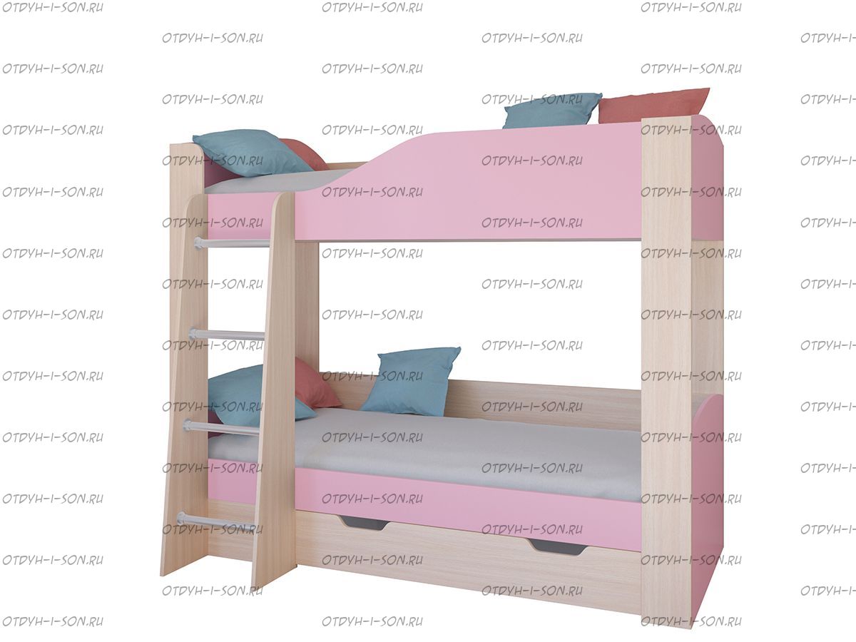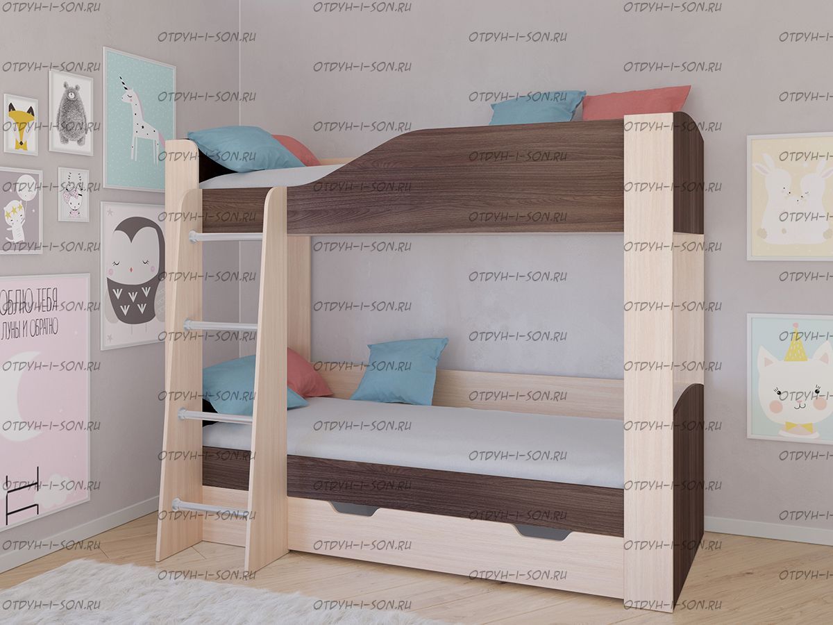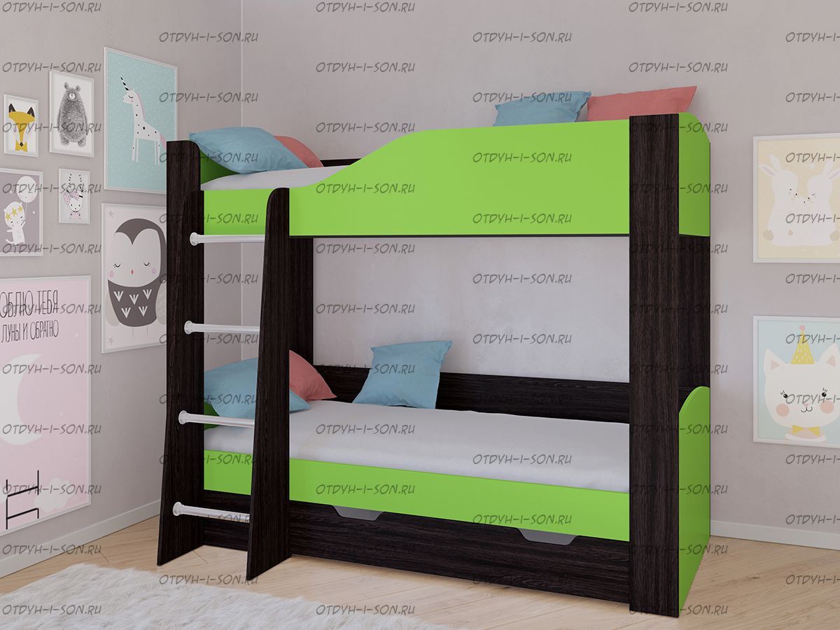 Кровать двухъярусная Астра-2 с ящиком. Детская двухъярусная кровать "АСТРА-2" — это 2 полноценных спальных места для Ваших малышей! Продуманная система хранения, которая есть не в каждой двухъярусной кровати, порадует Вас и Вашего ребенка, а различные цветовые решения помогут вписать эту детскую в любой интерьер.