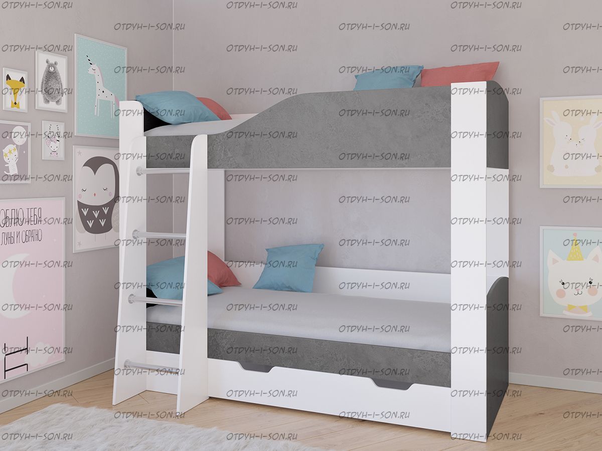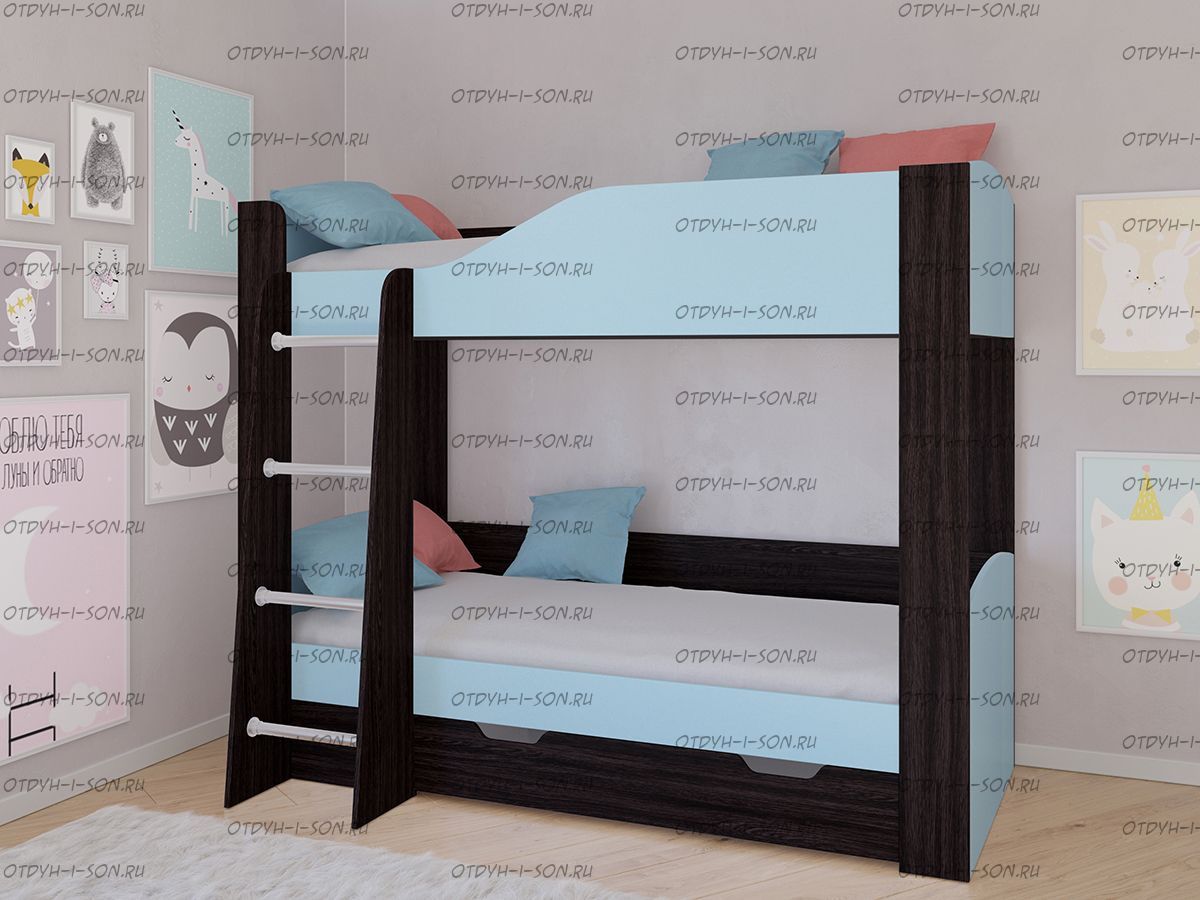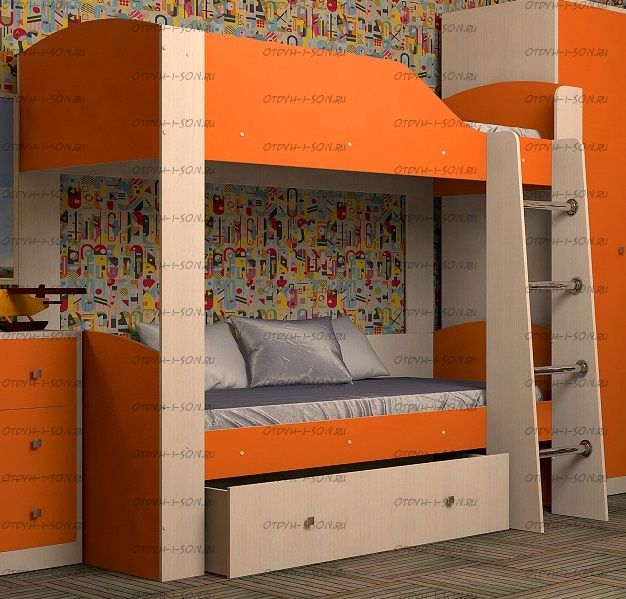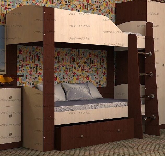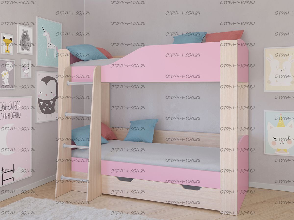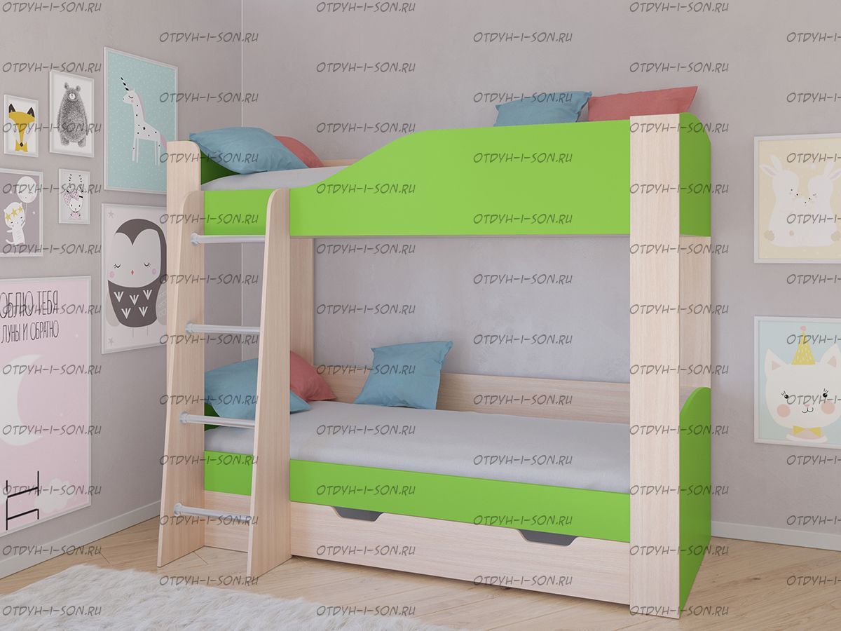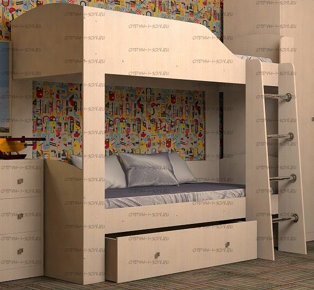Кровать двухъярусная Астра-2 с ящиком. Детская двухъярусная кровать "АСТРА-2" — это 2 полноценных спальных места для Ваших малышей! Продуманная система хранения, которая есть не в каждой двухъярусной кровати, порадует Вас и Вашего ребенка, а различные цветовые решения помогут вписать эту детскую в любой интерьер.
