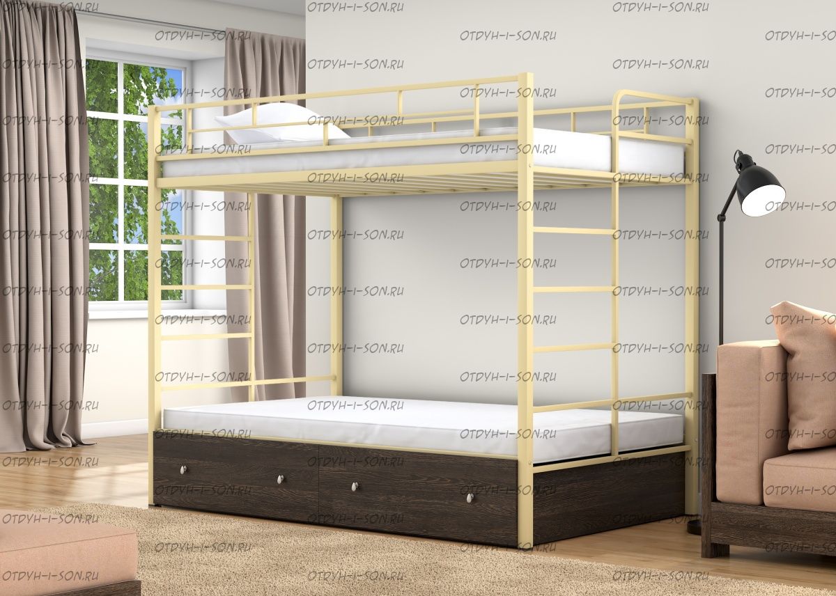 Кровать двухъярусная Валенсия Твист 120 +Я Лофт Характеристики: Габариты (ВхШхГ) см.: 199Х126х171 Размер нижнего и верхнего спального места (см.): 120х190 Тип: 2 лестницы Высота бортика: 30 см. Вес (кг.): 70 Цвет каркаса: коричневый, бежевый, черный Гарантия 12 месяцев.
