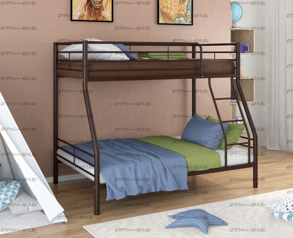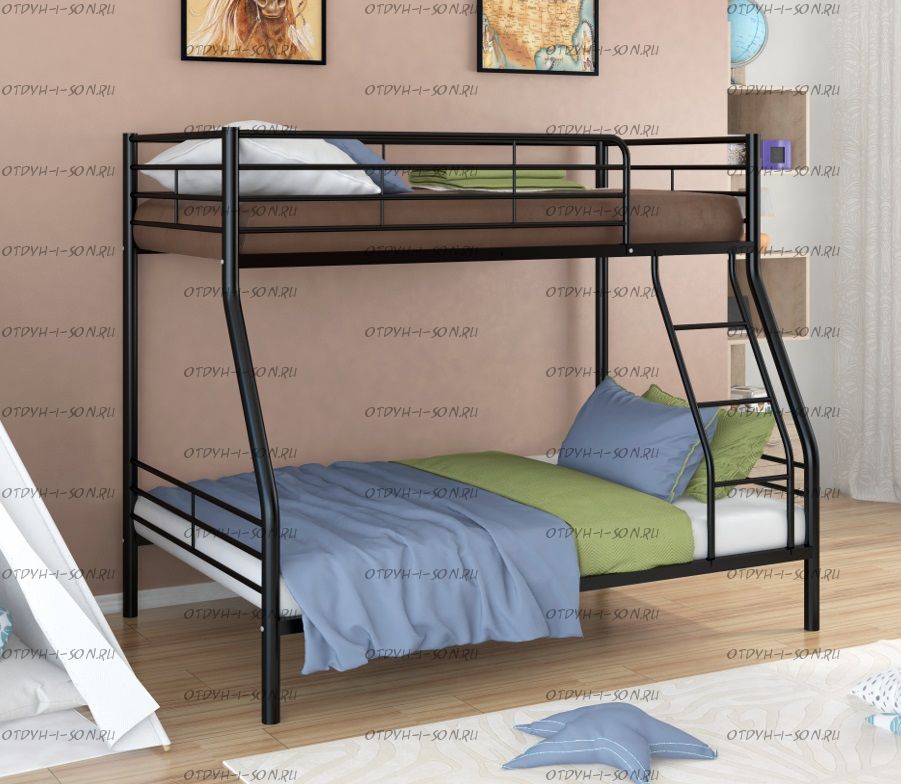 Кровать двухъярусная Гранада-2 Характеристики: Размер верхнего спального места: 90Х190 см. Размер нижнего спального места: 120х190 см Внешние габариты (ДхШхВ): 2010х1260х1660 см. Материалы каркаса: металл Диаметр трубы каркаса: 5,1 см. Толщина метала: 1.0 Вес: 62 кг Максимальная нагрузка: 300 кг. Кровать поставляется в разобранном виде Цвета: черный, коричневый, серый, слоновая кость