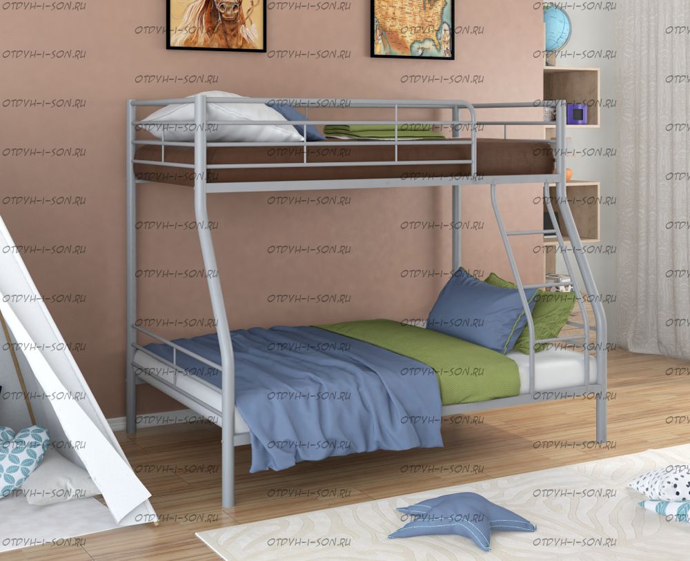 Кровать двухъярусная Гранада-2 Характеристики: Размер верхнего спального места: 90Х190 см. Размер нижнего спального места: 120х190 см Внешние габариты (ДхШхВ): 2010х1260х1660 см. Материалы каркаса: металл Диаметр трубы каркаса: 5,1 см. Толщина метала: 1.0 Вес: 62 кг Максимальная нагрузка: 300 кг. Кровать поставляется в разобранном виде Цвета: черный, коричневый, серый, слоновая кость