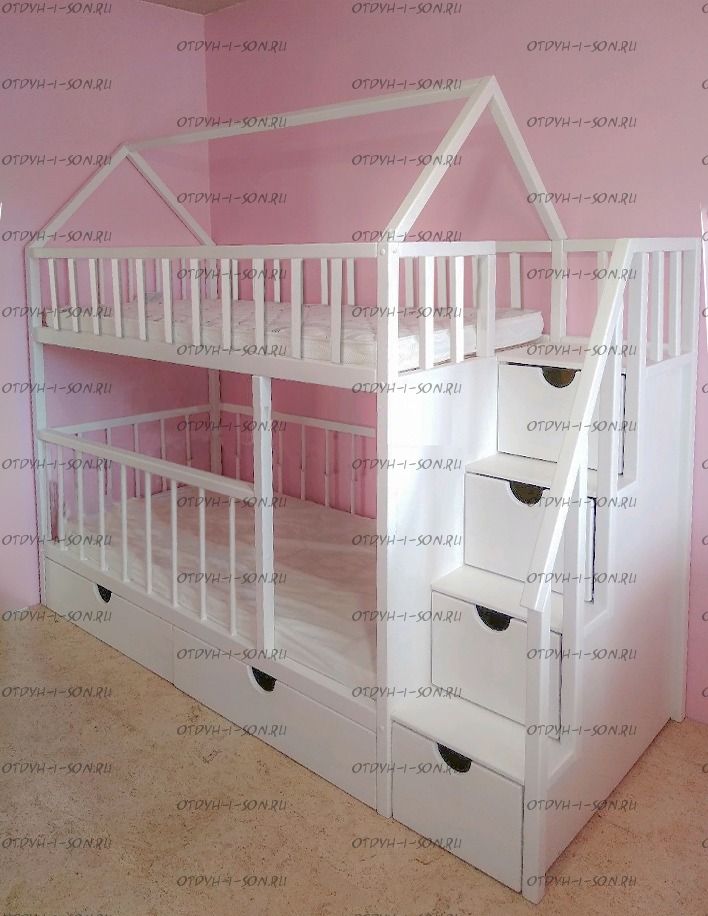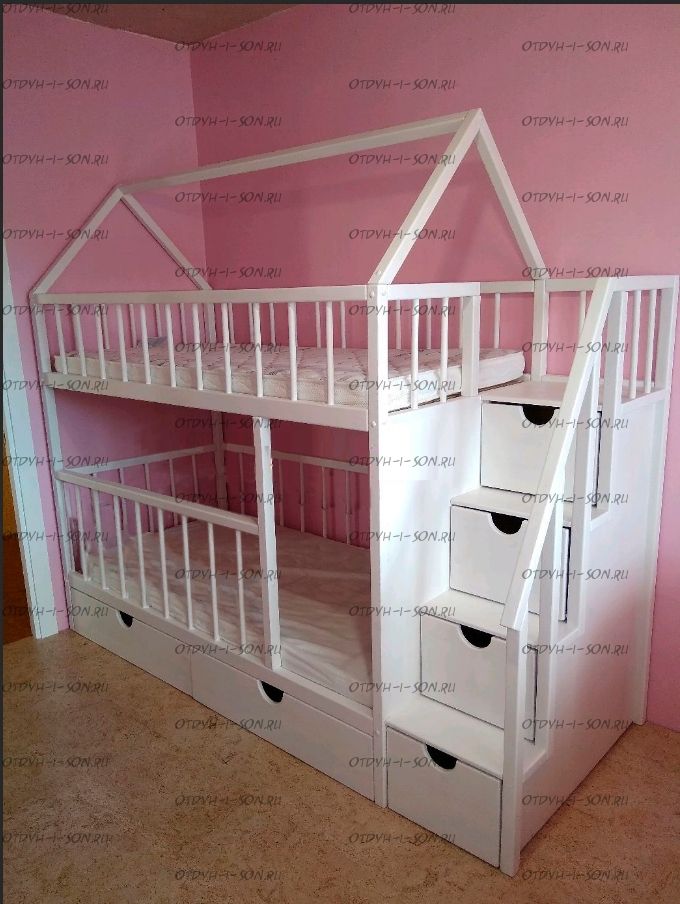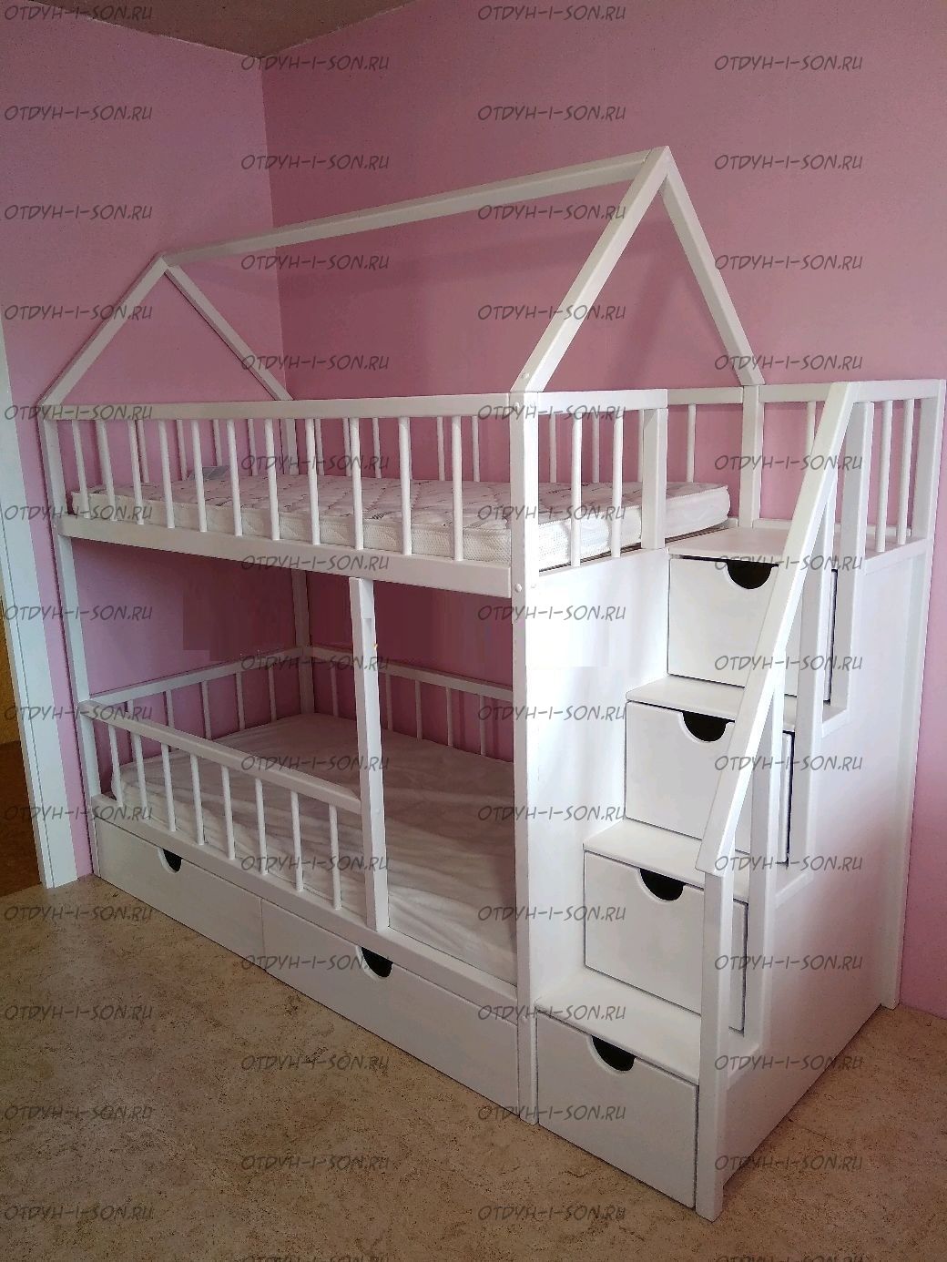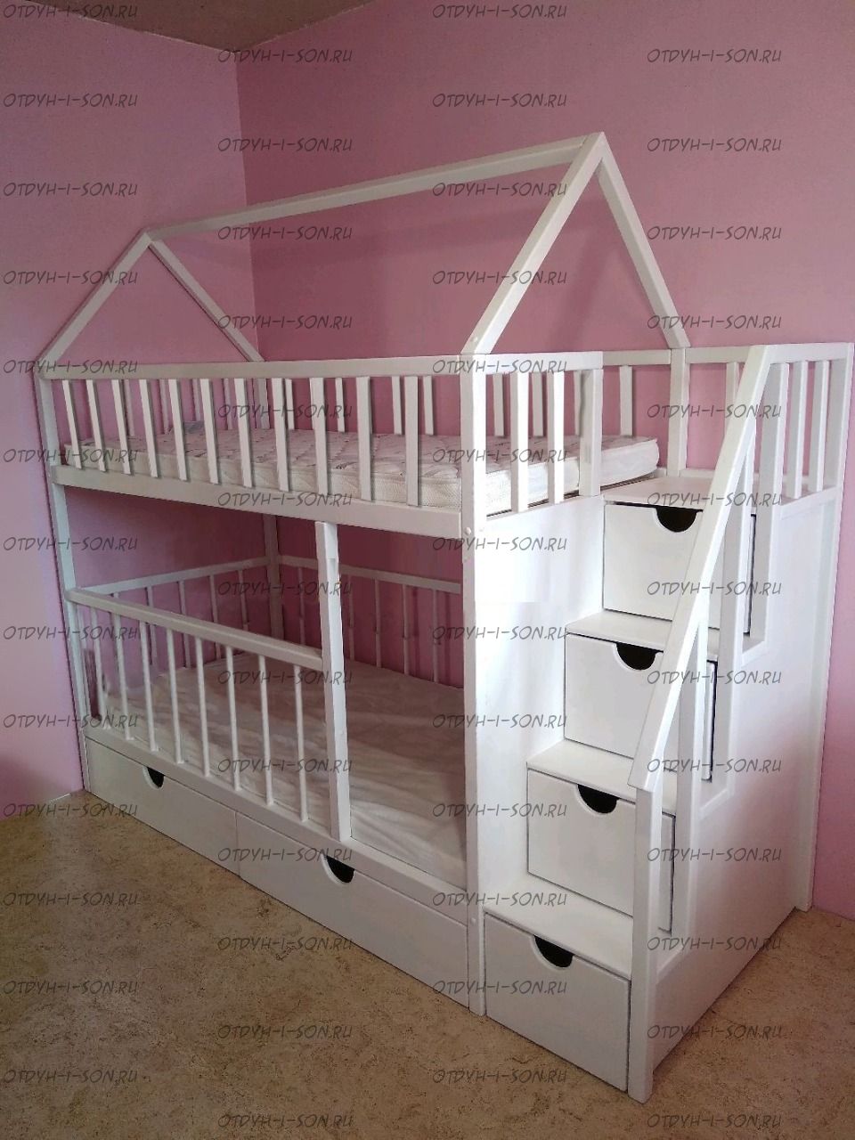 Кровать двухъярусная Домик Standard №14 (любые размеры) Характеристики: Размер спального места: 70Х160, 70Х170, 70Х180, 70Х190, 80Х160, 80Х170, 80Х180, 80Х190, 90Х160, 90Х170, 90Х180, 90Х190 идут по одной цене. Нестандарт:да, возможно, изготавливаем мебель по Вашим проектам Размер, цвет и декор могут быть индивидуальны. Материал: Сосна, береза, бук