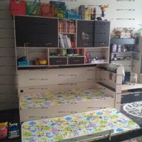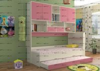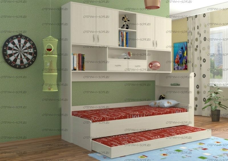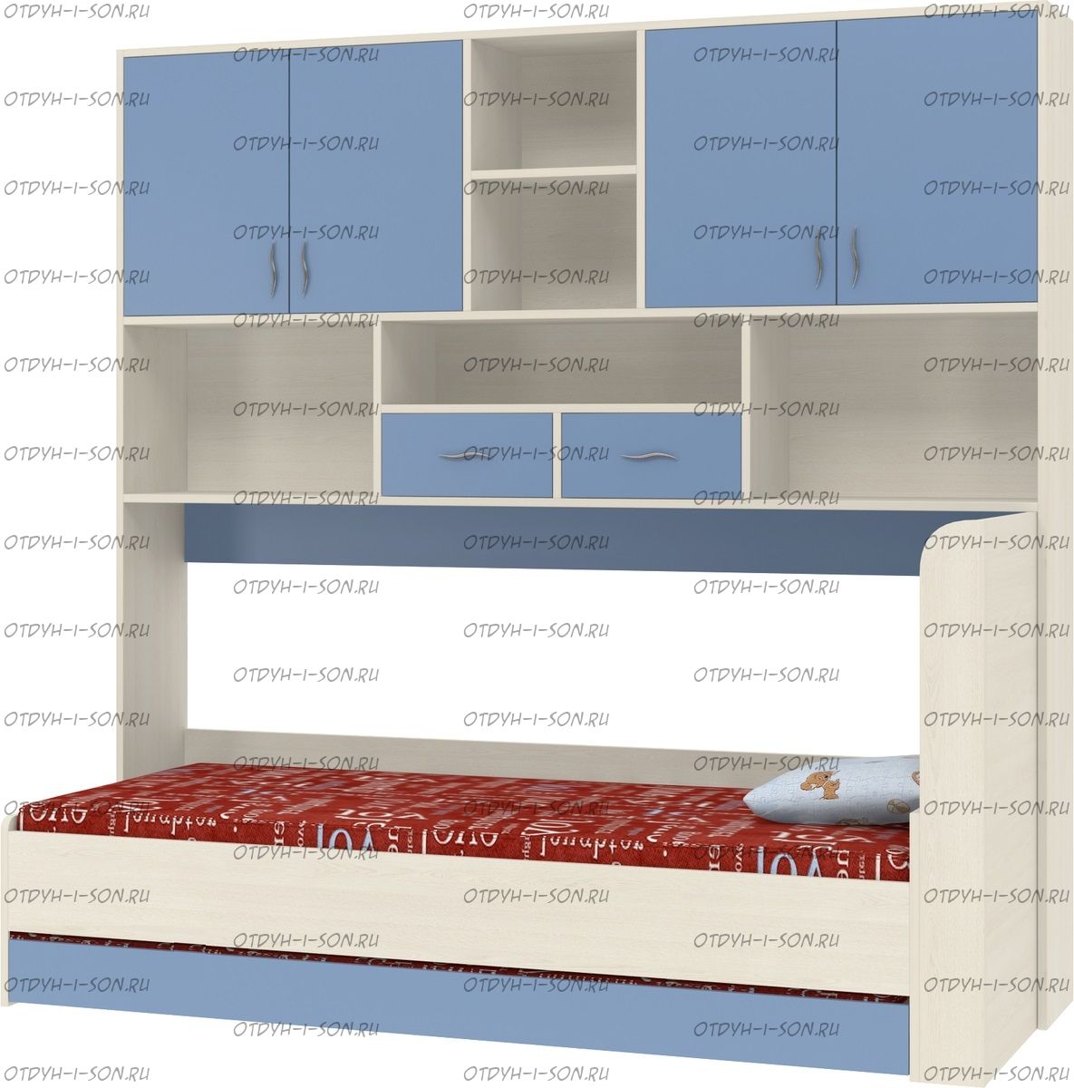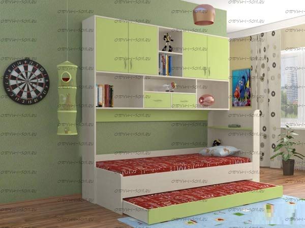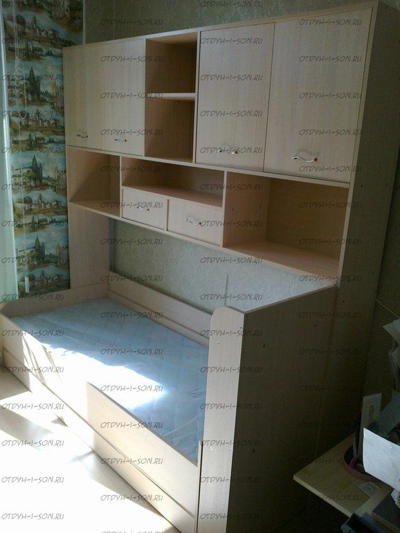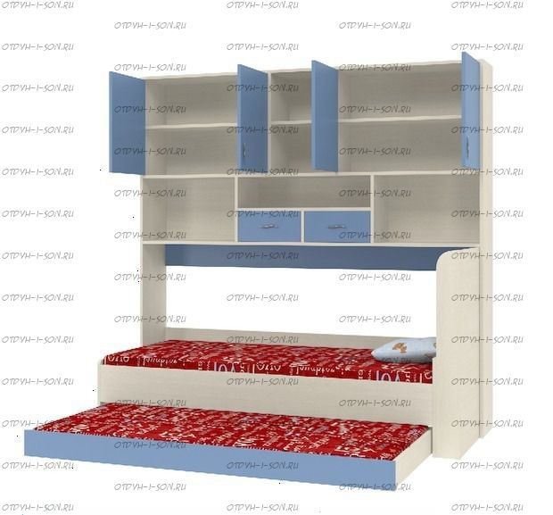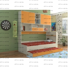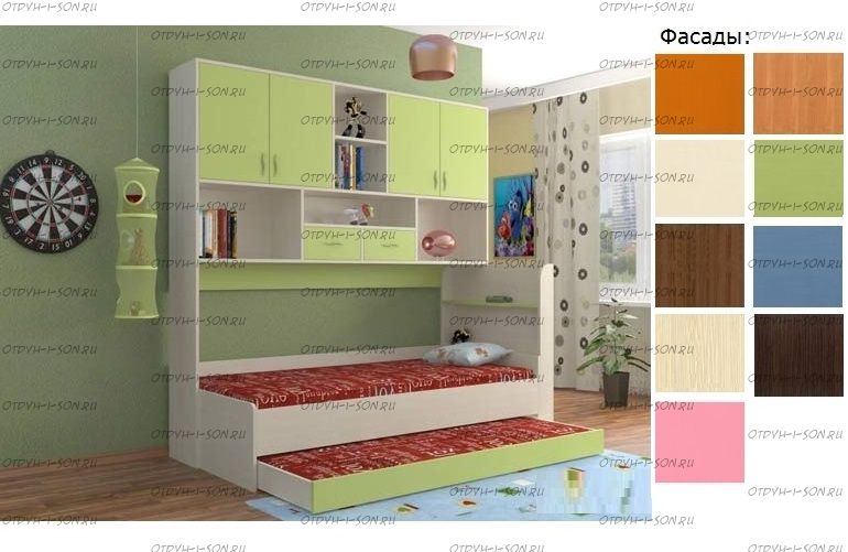 Кровать с антресолью Дельта 21.03 (ширина спального места 80) Характеристики: Размер спального места: 80Х190 см. Размер нижнего выкатного спальго места: 80х185 см Внешние габариты (ДхШхВ): 2120х870х2040 мм. Материалы: ламинированная ДСП 16 мм. Кромка ПВХ толщиной 2 мм производства «Rehau» (Германия) Кровать поставляется в разобранном виде Цвета корпуса: дуб молочный, дуб сонома, венге, орех Цвета фасадов: ольха, оранжевый, орех, дуб молочный, голубой, салатовый, крем ваниль, розовый, салатовый, венге, зеленый текстиль, желтый