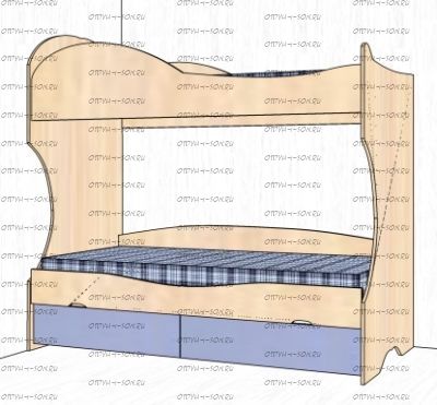 Кровать двухъярусная Дельта №20 с двумя выкатными ящиками размером 206 х 936 мм. от фабрики Формула мебели.