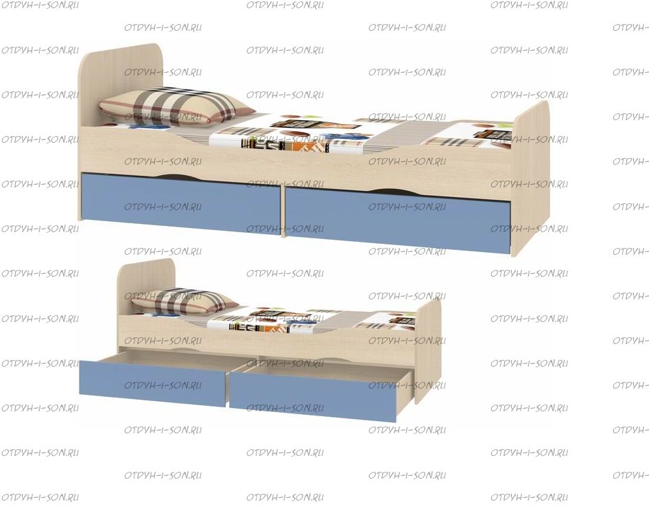 Кровать подростковая Дельта-19. Характеристики: Размер спального места: 80Х190см Внешние габариты (ДхШхВ): 1950х850х740 мм. Высота изголовья: 77см. Вес: 87 кг. Объем: 0,2 м3 Цвета корпуса: дуб молочный, дуб сонома, венге, орех Цвета фасадов: ольха, оранжевый, орех, дуб молочный, голубой, салатовый, крем ваниль, розовый, салатовый, венге, зеленый текстиль, желтый