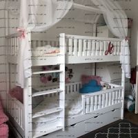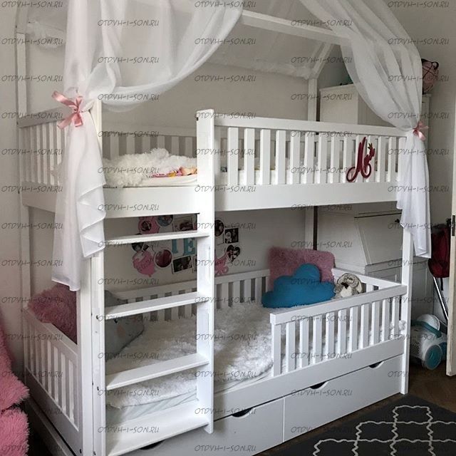 Кровать двухъярусная Домик Standard №15+ На фотографиях от покупателей могут быть изображены кровати домики разной высоты, уточняйте при заказе нужную Вам высоту! Характеристики: Размер спального места: 80х160 + 80х160, 80х180 + 80х180, 80х190 + 80х190, 80х200 + 80х200, 90х160 + 90х160, 90х180 + 90х180, 90х190 + 90х190, 80х200 + 90х200 см. или любые другие на Ваш выбор. Общая высота: 2350 мм. Высота царги: 140 мм. Габаритные Размеры: +10 см к ширине, +50 см к длине. (спального места) Характеристика выкатных ящиков: Комплект состоит из 2х ящиков; Мебельная фанера/ Массив дерева; Ящики на роликах; Дно ящика 5мм ДВП; Ящик двигается по полу. К кровати не фиксируется, установка с любой стороны. Масса в упаковке: Объем в упаковке: Материал: массив сосны 2 подкроватных ящика с колесиками, ящики не закрепляются в кровати и могут выдвигаться с любой стороны кровати (ящики докупаются отдельно). В базовом варианте с тыльной стороны ящиков декоративной планки не предусмотрено Основание под матрас реечное Внимание: возможно увеличение высоты бортиков кровати! Цвет: орех, бук, венге, груша, дуб, каштан, клен, красное дерево, махагон, ольха, сосна, белый (эмаль), слоновая кость (эмаль)