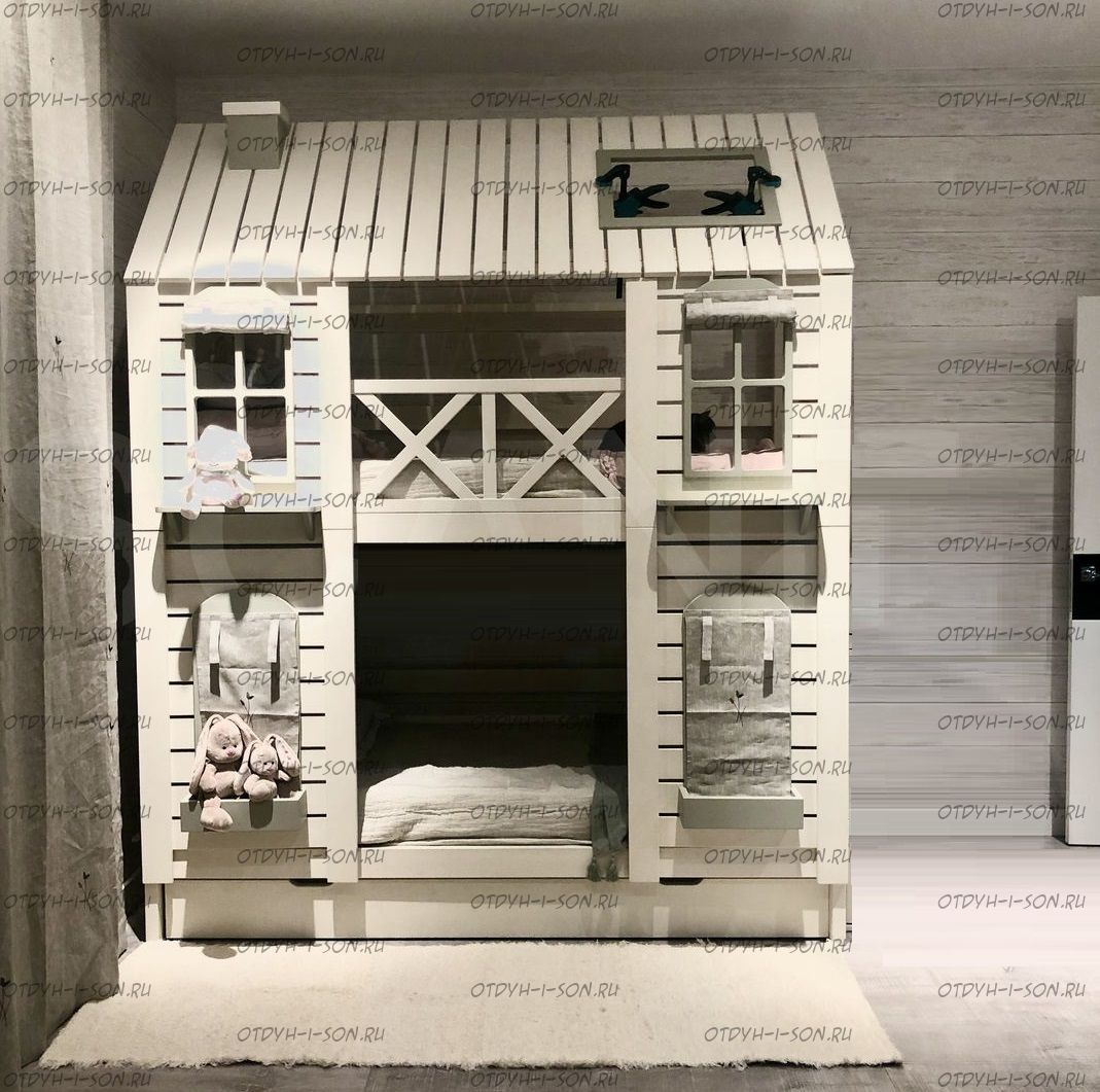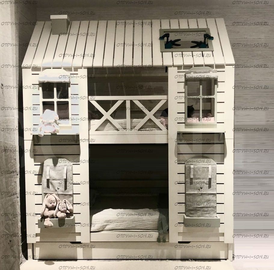 Двухъярусная кровать Домик Felicia №3С, крыша закрыта наполовину.