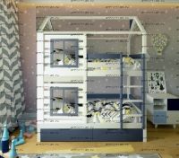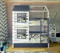 Двухъярусная кровать Домик Felicia №9B В связи с широким выбором модификаций кровати Домик, при заказе необходимо указывать какая именно кровать, на какой фотографии, Вас интересует. Характеристики: Размер спального места: 70Х160+70Х160, 70Х170+70Х170, 70Х180+70Х180, 70Х190+70Х190, 80Х160+80Х160, 80Х170+80Х170, 80Х180+80Х180, 80Х190+80Х190, 90Х160+90Х160, 90Х170+90Х170, 90Х180+90Х180, 90Х190+90Х190 см., также возможно изготовление в других размерах. Материалы: Материалы: массив дерева Нестандарт: да, возможно, изготавливаем мебель по Вашим проектам Размер, цвет и декор также могут быть индивидуальны.