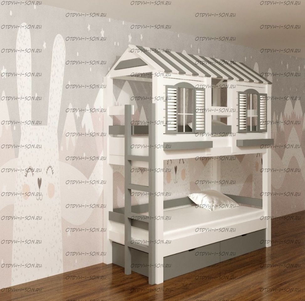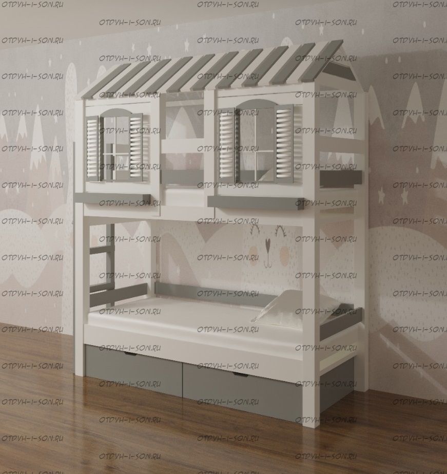 Двухъярусная кровать Домик Felicia №3H В связи с широким выбором модификаций кровати Домик №37, при заказе необходимо указывать какая именно кровать, на какой фотографии, Вас интересует. Характеристики: Размер спального места: 70Х160+70Х160, 70Х170+70Х170, 70Х180+70Х180, 70Х190+70Х190, 80Х160+80Х160, 80Х170+80Х170, 80Х180+80Х180, 80Х190+80Х190, 90Х160+90Х160, 90Х170+90Х170, 90Х180+90Х180, 90Х190+90Х190 см., также возможно изготовление в других размерах. Стандартная ширина каждого блока с окном 65 см., но уточняйте всегда перед заказом эти параметры, так как они могут меняться в зависимости от длины кровати. Материалы: Материалы: массив дерева Нестандарт: да, возможно, изготавливаем мебель по Вашим проектам Размер, цвет и декор также могут быть индивидуальны.