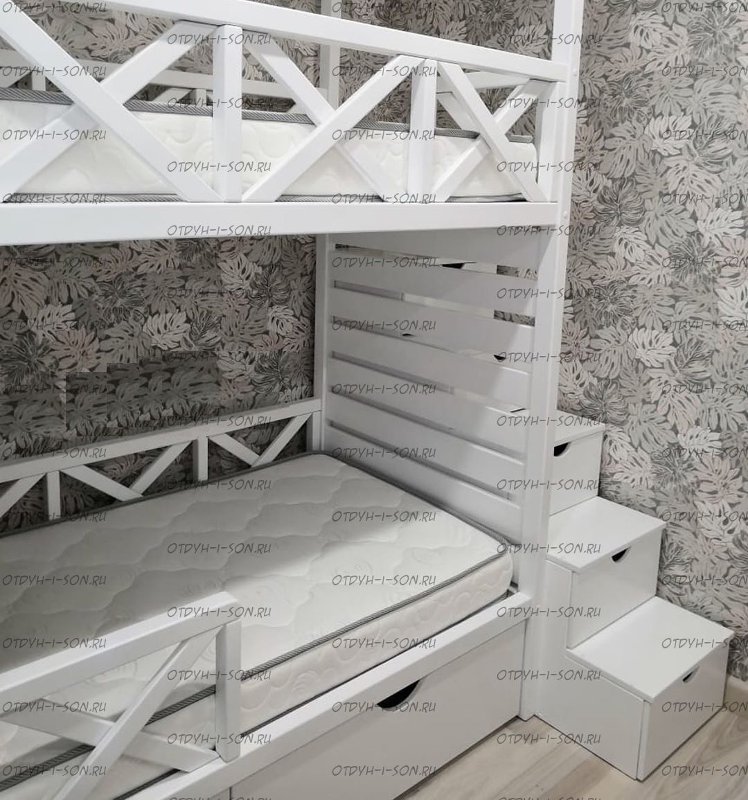Кровать двухъярусная Домик Roof №14 В связи с широким выбором модификаций кровати Домик Roof, при заказе необходимо указывать какая именно кровать, на какой фотографии, Вас интересует. Характеристики: Размер спального места: 70Х160+70Х160, 70Х170+70Х170, 70Х180+70Х180, 70Х190+70Х190, 80Х160+80Х160, 80Х170+80Х170, 80Х180+80Х180, 80Х190+80Х190, 90Х160+90Х160, 90Х170+90Х170, 90Х180+90Х180, 90Х190+90Х190 см., также возможно изготовление в других размерах. Материалы: Материалы: массив дерева Нестандарт: да, возможно, изготавливаем мебель по Вашим проектам Размер, цвет и декор также могут быть индивидуальны.