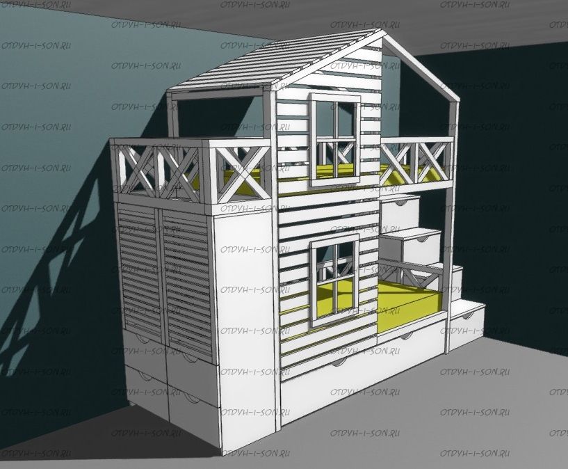 Кровать двухъярусная Домик Roof №14