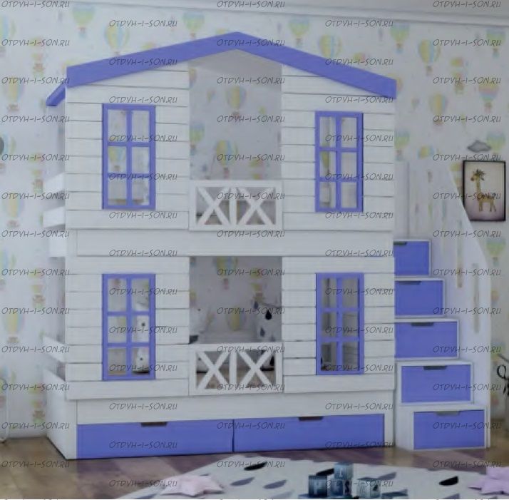 Кровать двухъярусная Домик Roof №18 Комплектация: Кровать двухъярусная Домик Ящики подкроватные Лестница-тумба Характеристики: •Размеры верхнего спального места: 80х160 см.,90х180 см.,90х200 см.и любые другие •Размеры нижнего спального места: 80х160 см.,90х180 см.,90х200 см.и любые другие •Внешние размеры кровати при размере спального места 90х200 (ШхГхВ): •Внешние размеры кровати с лестницей-комодом сп.место 90х200 (ШхГхВ): •Габаритные размеры: любые •Материалы: массив сосны •Цвет покрытия: любая цветовая гамма (таблица палитры Ral);