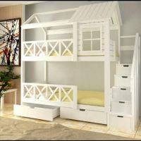 Кровать двухъярусная Домик Felicia №34 Комплектация: Кровать двухъярусная Домик Ящики подкроватные Лестница-тумба Характеристики: •Размеры верхнего спального места: 80х160 см.,90х180 см.,90х200 см.и любые другие •Размеры нижнего спального места: 80х160 см.,90х180 см.,90х200 см.и любые другие •Внешние размеры кровати при размере спального места 90х200 (ШхГхВ): 210х100х180 см. •Внешние размеры кровати с лестницей-комодом сп.место 90х200 (ШхГхВ): 260х100х180 см. •Габаритные размеры: любые •Материалы: массив сосны •Цвет покрытия: любая цветовая гамма (таблица палитры Ral);
