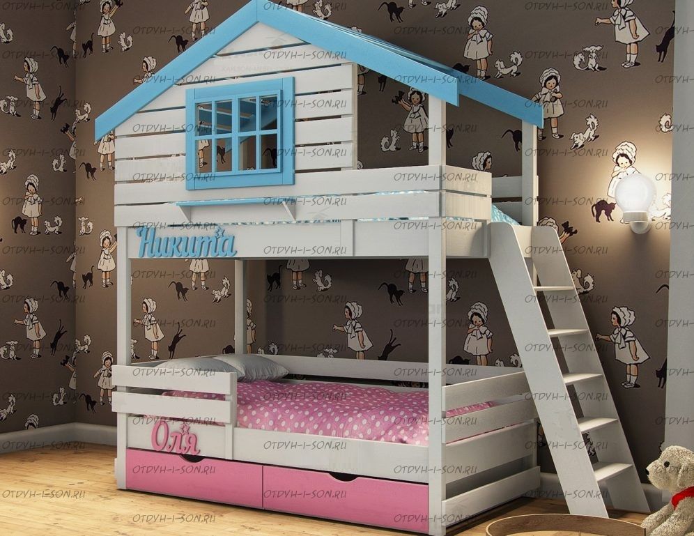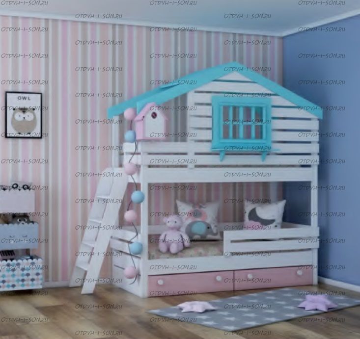 Кровать двухъярусная Домик Roof №7 Комплектация: Кровать двухъярусная Домик Ящики подкроватные Лестница Крыша кровати открытая Характеристики: •Размеры верхнего спального места: 80х160 см.,90х180 см.,90х200 см.и любые другие •Размеры нижнего спального места: 80х160 см.,90х180 см.,90х200 см.и любые другие •Внешние размеры кровати при размере спального места 90х200 (ШхГхВ): 210х100х180 см. •Внешние размеры кровати с лестницей-комодом сп.место 90х200 (ШхГхВ): 260х100х180 см. •Габаритные размеры: любые •Материалы: массив сосны •Цвет покрытия: любая цветовая гамма (таблица палитры Ral);