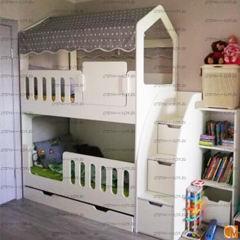 Кровать двухъярусная Домик с лесенкой ДС-17+, большой выбор цветов