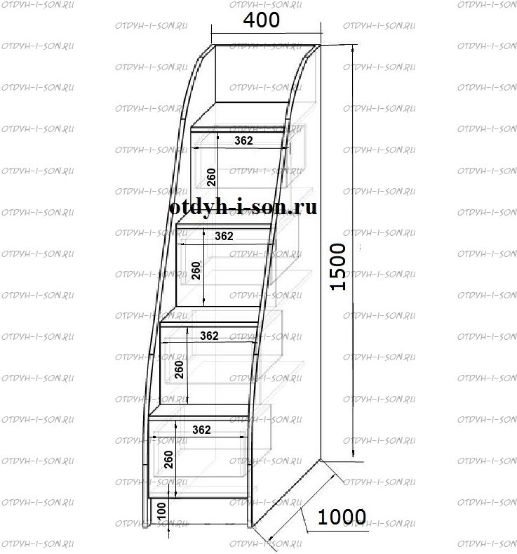 | Тип изделия | Кровать двухъярусная и лестница-комод |