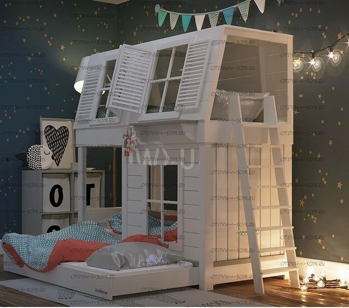 Кровать двухъярусная Домик Village с крышей №5Д