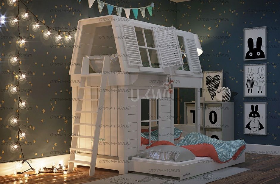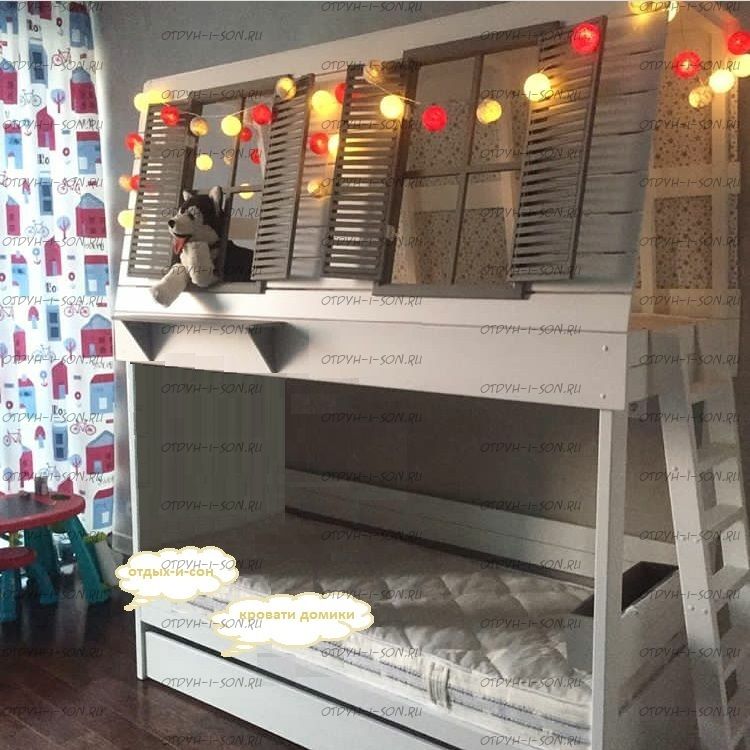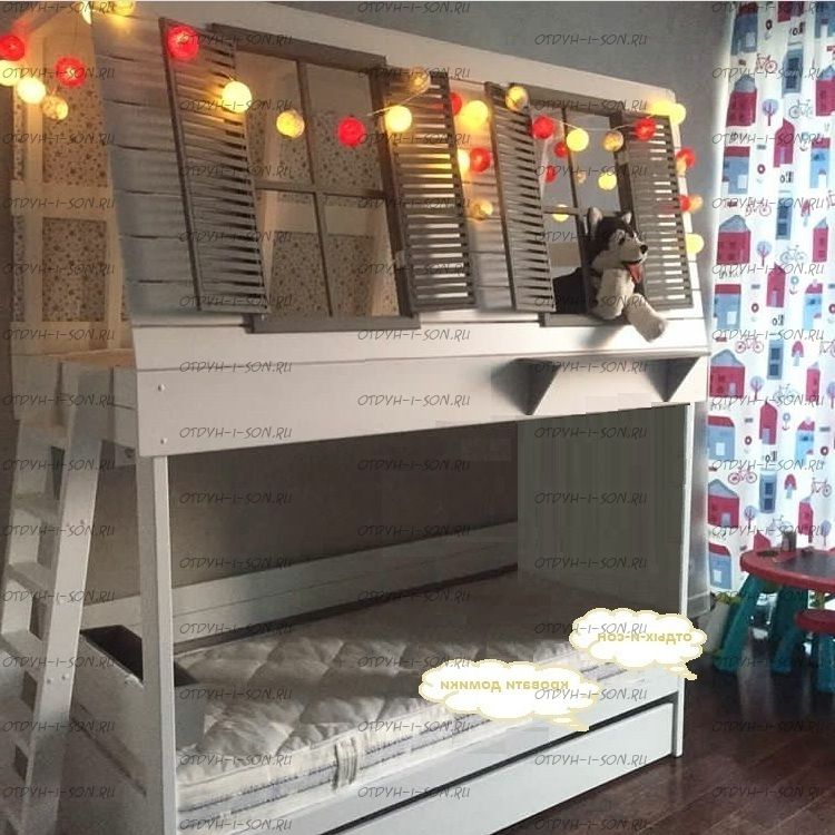 Кровать двухъярусная Домик Village №3, любые размеры и цвета