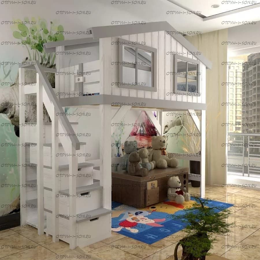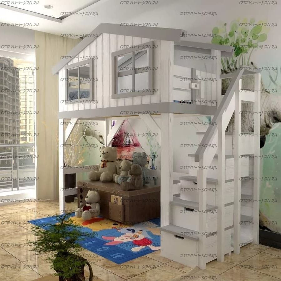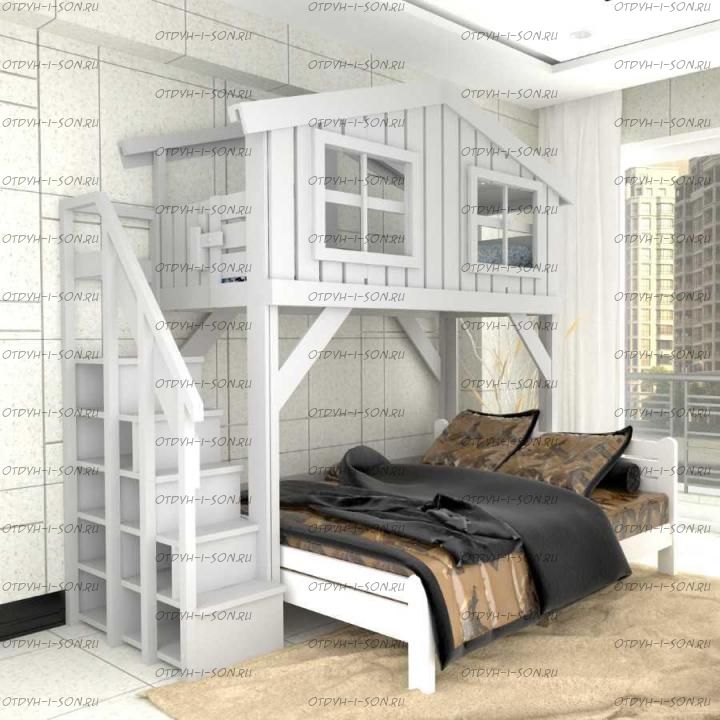 Кровать-чердак Домик Roof №33А. Характеристики: Размер спального места: 70х180, 80х180 см, 80х190 см, 90х190 см., 90х200 см. (и любые другие по Вашим замерам) Внешние размеры: Материал: сосна Возможны любые нестандартные размеры Кровать выдерживает нагрузку до 120 кг. Вес кровати: Объем кровати: Цвет: Возможность трансформации в отдельно стоящие кровать чердак и двуспальную кровать; - без матрасов; опорный брус спинок(ножки) - 40х80мм. Внимание: для любой модели кровати возможно увеличение высоты бортиков кровати! Возможно изготовление кровати нестандартных размеров по вашим замерам, доплата за нестандартный размер: - за кровать + 10% от стоимости изделия; Производство Владимирской мебельной фабрики, кровать доставляется напрямую от производителя, самовывоз ограничен.