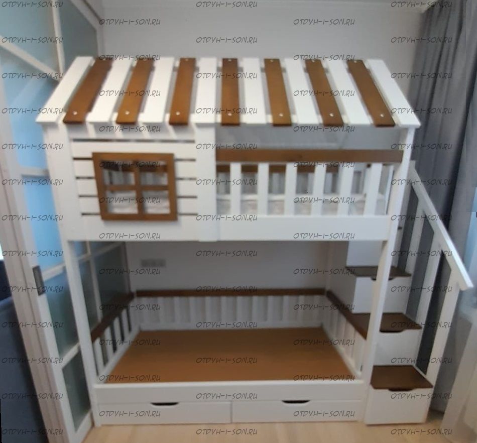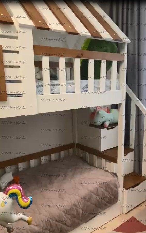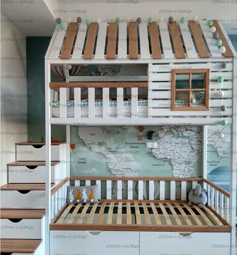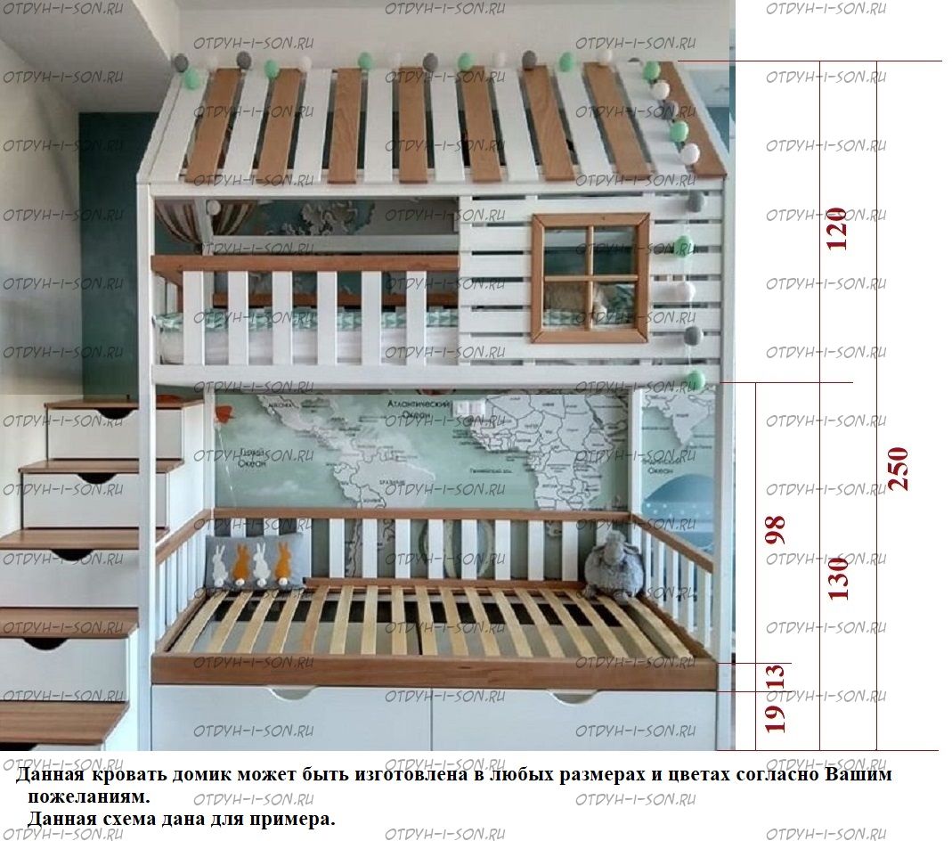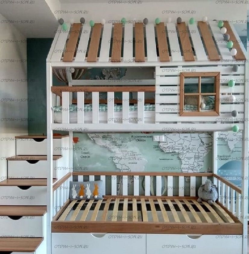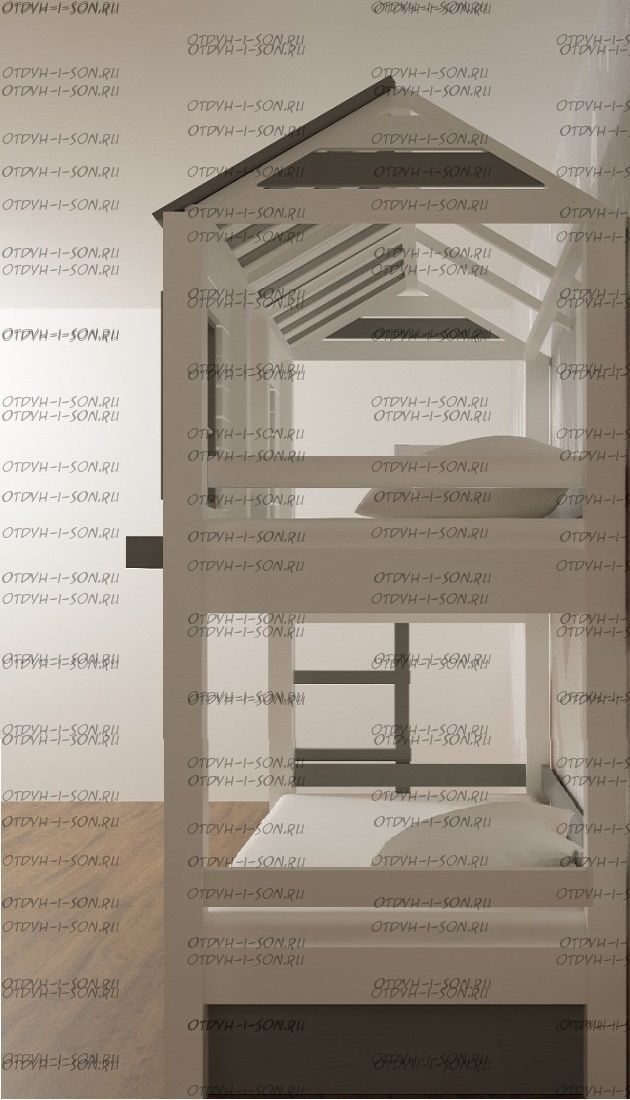 Кровать двухъярусная Домик Felicia №10 может быть изготовлена как трехъярусная кровать, а также в любых размерах и цветах.