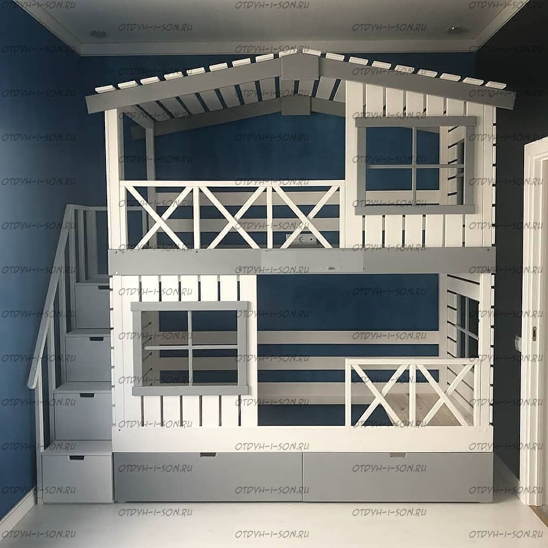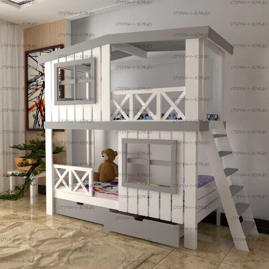 Кровать двухъярусная Домик Roof №20А может быть изготовлена как трехъярусная кровать. Характеристики: Размер спального места верхнего яруса: 70х180, 80х180 см, 80х190 см, 90х190 см., 90х200 см. (и любые другие на Ваш вкус) Размер спального места нижнего яруса: 80х190, 80х200, 90х190, 90х200, 120х190, 120х200, 130х200, 140х190 см. (и любые другие на Ваш вкус) Внешние размеры: Материал: сосна Возможны любые нестандартные размеры Вес кровати: Объем кровати: Цвет: Возможность трансформации в отдельно стоящие кровать чердак и двуспальную кровать; - без матрасов; опорный брус спинок(ножки) - 40х80мм. Внимание: для любой модели кровати возможно увеличение высоты бортиков кровати! Возможно изготовление кровати нестандартных размеров по вашим замерам, доплата за нестандартный размер: - за кровать + 10% от стоимости изделия; Производство Владимирской мебельной фабрики, кровать доставляется напрямую от производителя, самовывоз ограничен.