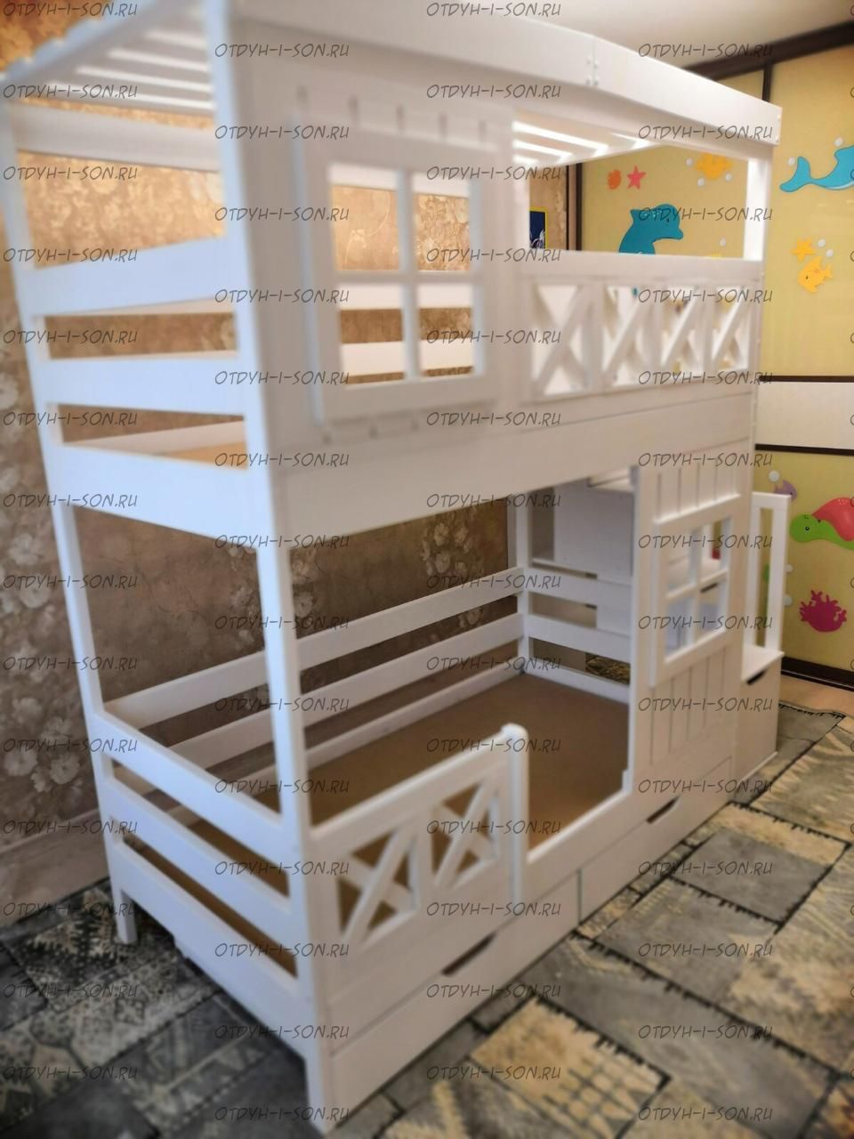 Кровать двухъярусная Домик Roof №20А может быть изготовлена как трехъярусная кровать.