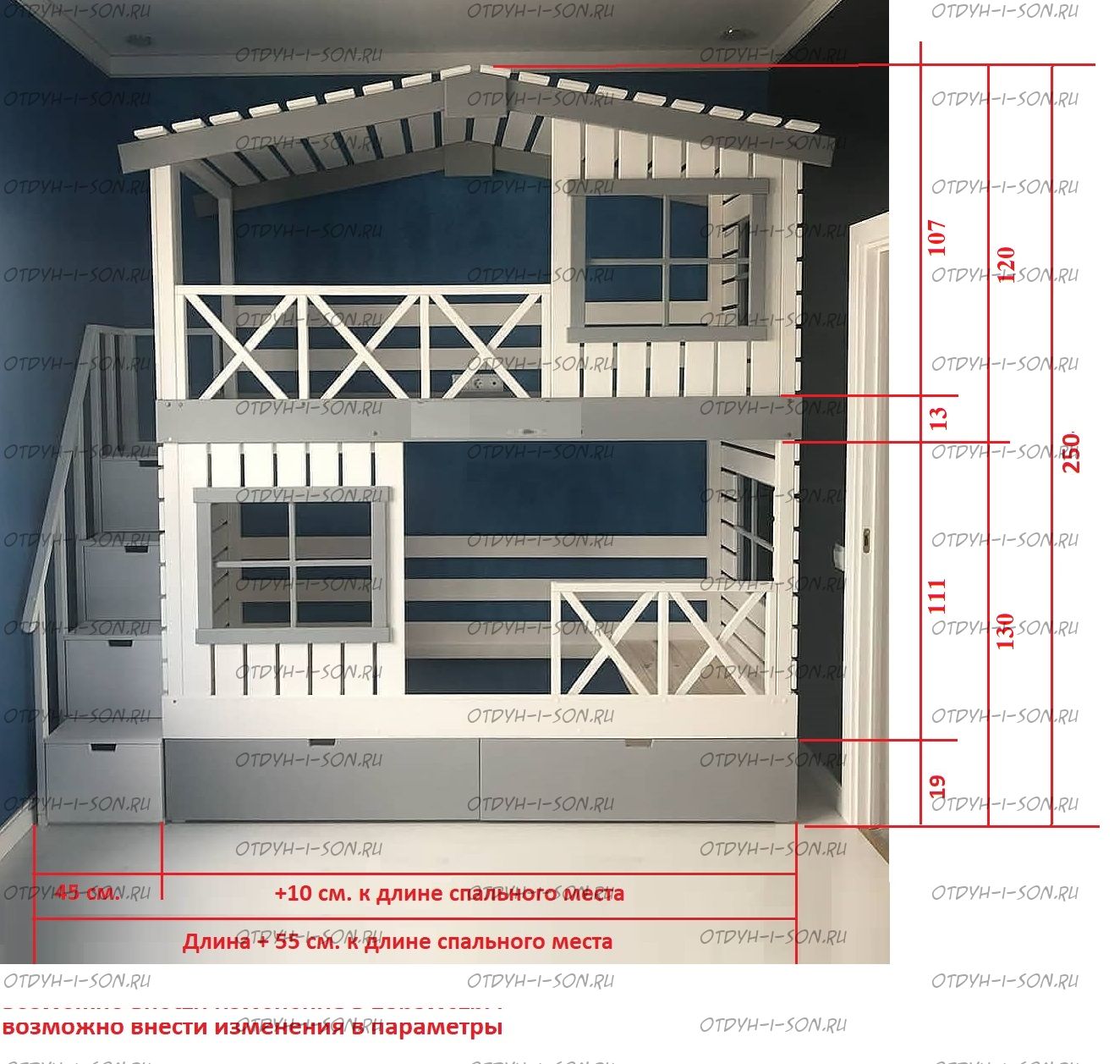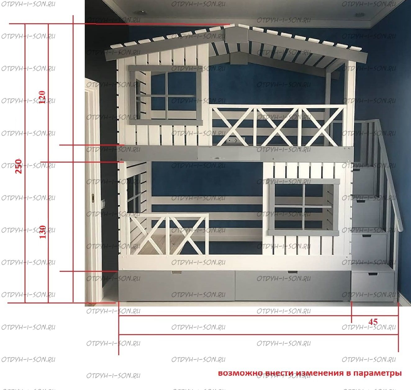Данная кровать может иметь более низкую цену, если убрать планки крыши и уменьшить количество окон.