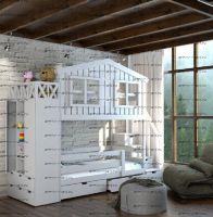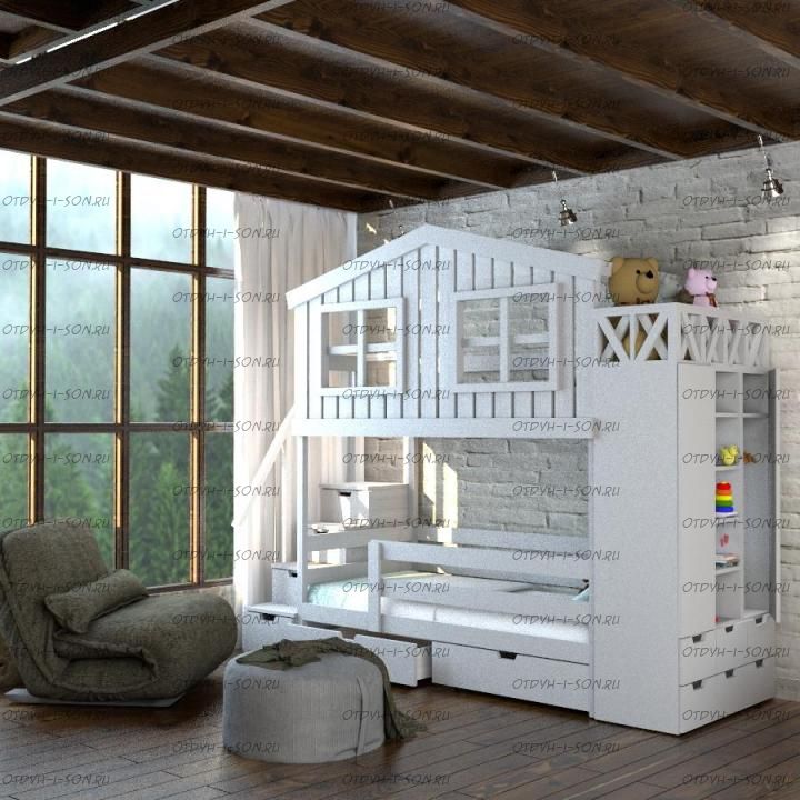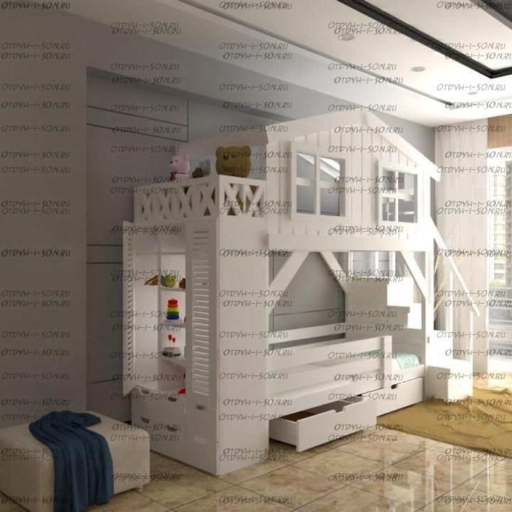 Кровать двухъярусная Домик Roof №33L может быть изготовлена как трехъярусная кровать. Характеристики: Размер спального места верхнего яруса: 70х180, 80х180 см, 80х190 см, 90х190 см., 90х200 см. (и любые другие на Ваш вкус) Размер спального места нижнего яруса: 80х190, 80х200, 90х190, 90х200, 120х190, 120х200, 130х200, 140х190 см. (и любые другие на Ваш вкус) Внешние размеры: Материал: сосна Возможны любые нестандартные размеры Вес кровати: Объем кровати: Цвет: Возможность трансформации в отдельно стоящие кровать чердак и двуспальную кровать; - без матрасов; опорный брус спинок(ножки) - 40х80мм. Внимание: для любой модели кровати возможно увеличение высоты бортиков кровати! Возможно изготовление кровати нестандартных размеров по вашим замерам, доплата за нестандартный размер: - за кровать + 10% от стоимости изделия; Производство Владимирской мебельной фабрики, кровать доставляется напрямую от производителя, самовывоз ограничен.