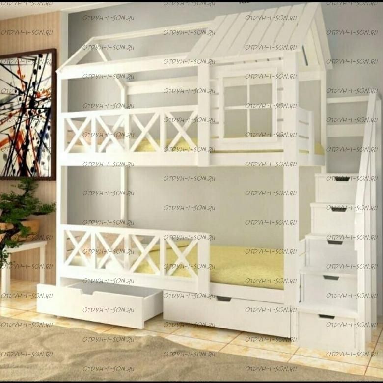 Кровать двухъярусная Домик Standard №34А может быть изготовлена как трехъярусная кровать. Характеристики: Размер спального места верхнего яруса: 70х180, 80х180 см, 80х190 см, 90х190 см., 90х200 см. (и любые другие на Ваш вкус) Размер спального места нижнего яруса: 80х190, 80х200, 90х190, 90х200, 120х190, 120х200, 130х200, 140х190 см. (и любые другие на Ваш вкус) Внешние размеры: Материал: сосна Возможны любые нестандартные размеры Вес кровати: Объем кровати: Цвет: Возможность трансформации в отдельно стоящие кровать чердак и двуспальную кровать; - без матрасов; опорный брус спинок(ножки) - 40х80мм. Внимание: для любой модели кровати возможно увеличение высоты бортиков кровати! Возможно изготовление кровати нестандартных размеров по вашим замерам, доплата за нестандартный размер: - за кровать + 10% от стоимости изделия; Производство Владимирской мебельной фабрики, кровать доставляется напрямую от производителя, самовывоз ограничен.