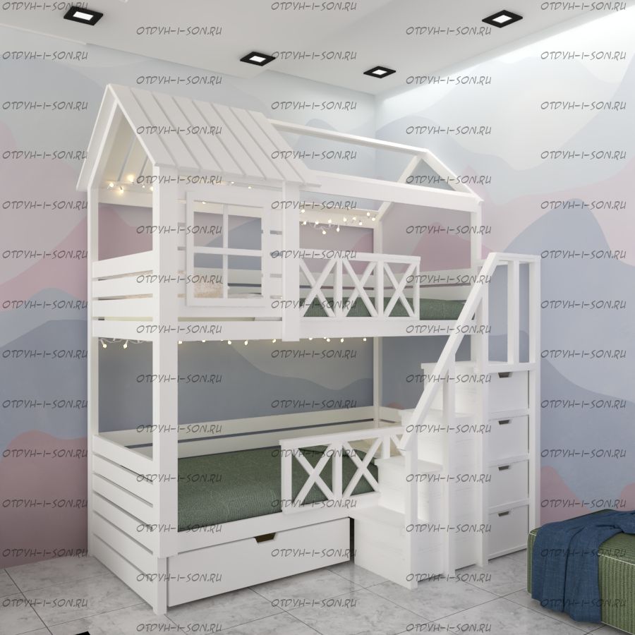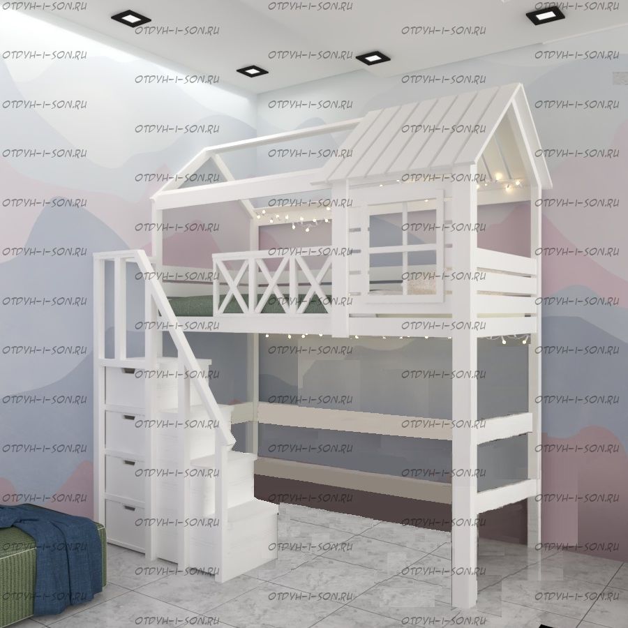 Кровать двухъярусная Домик Standard №34А может быть изготовлена как трехъярусная кровать.