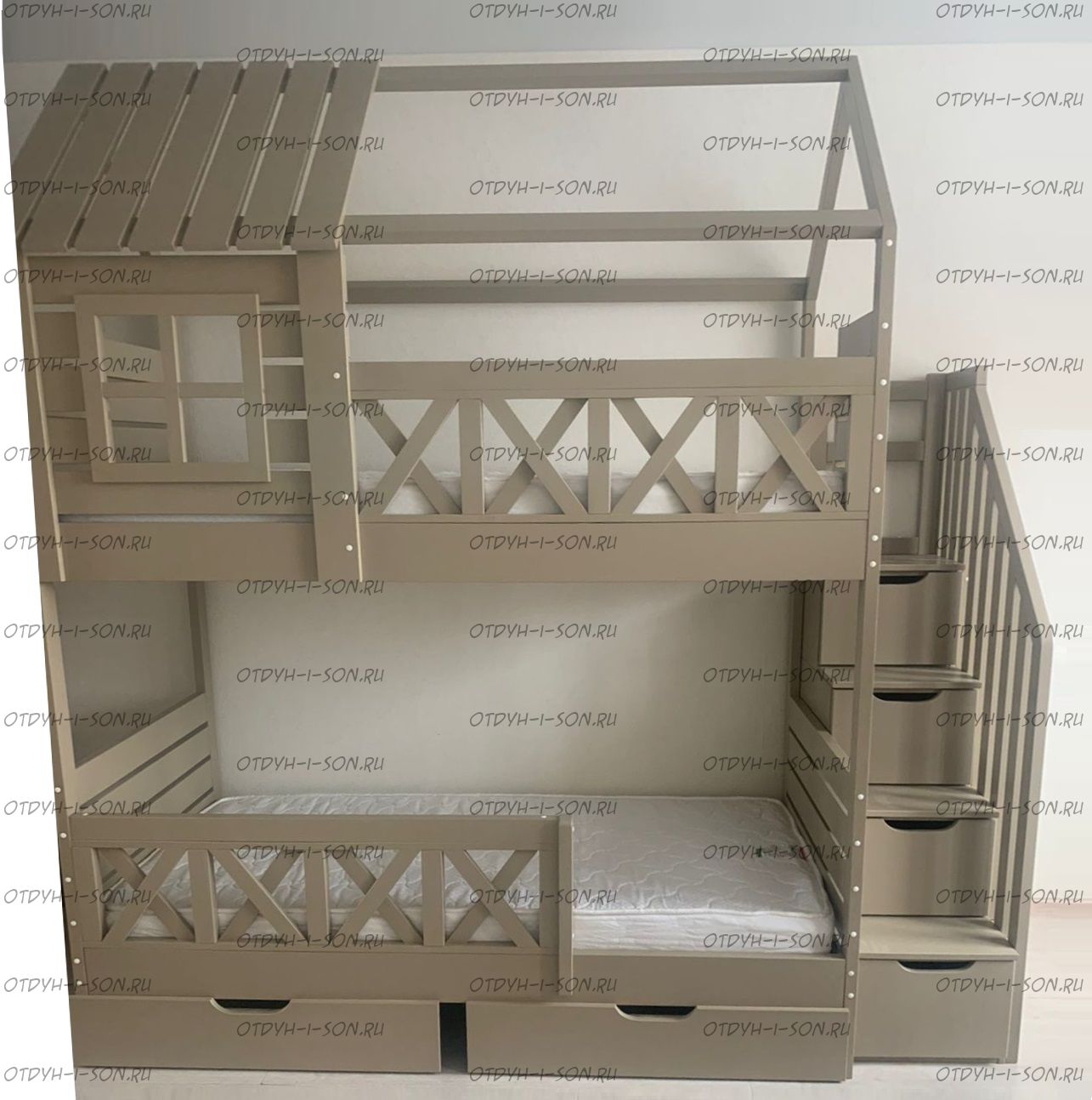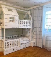 Кровать двухъярусная Домик Standard №34С может быть изготовлена как трехъярусная кровать.