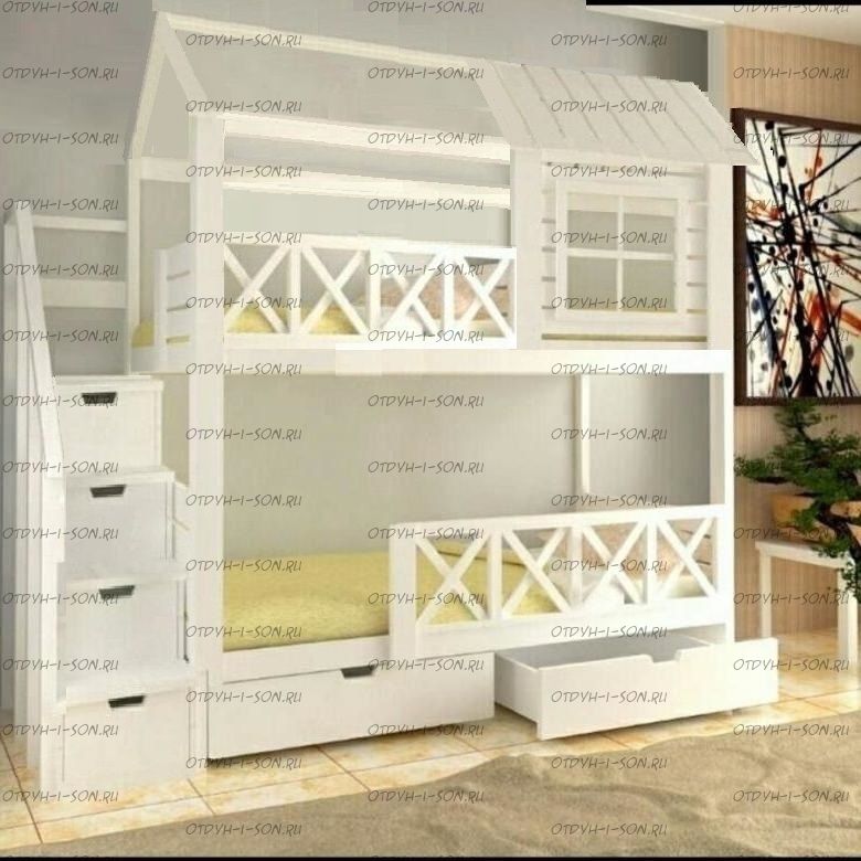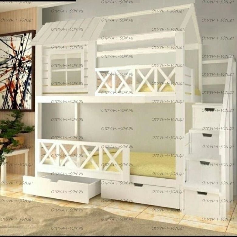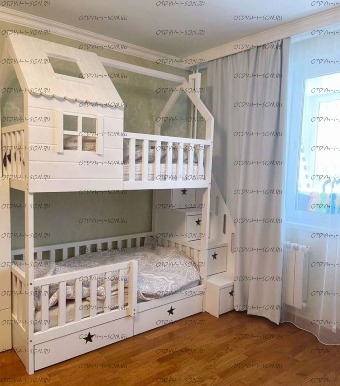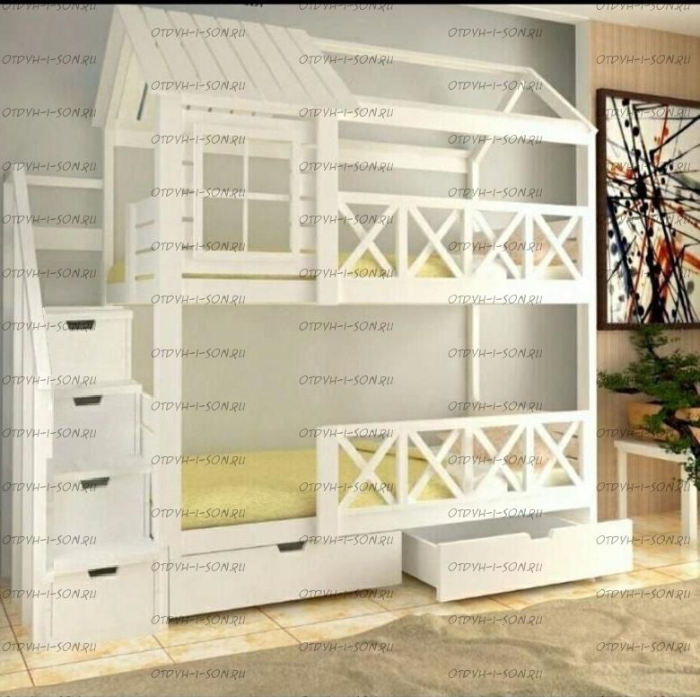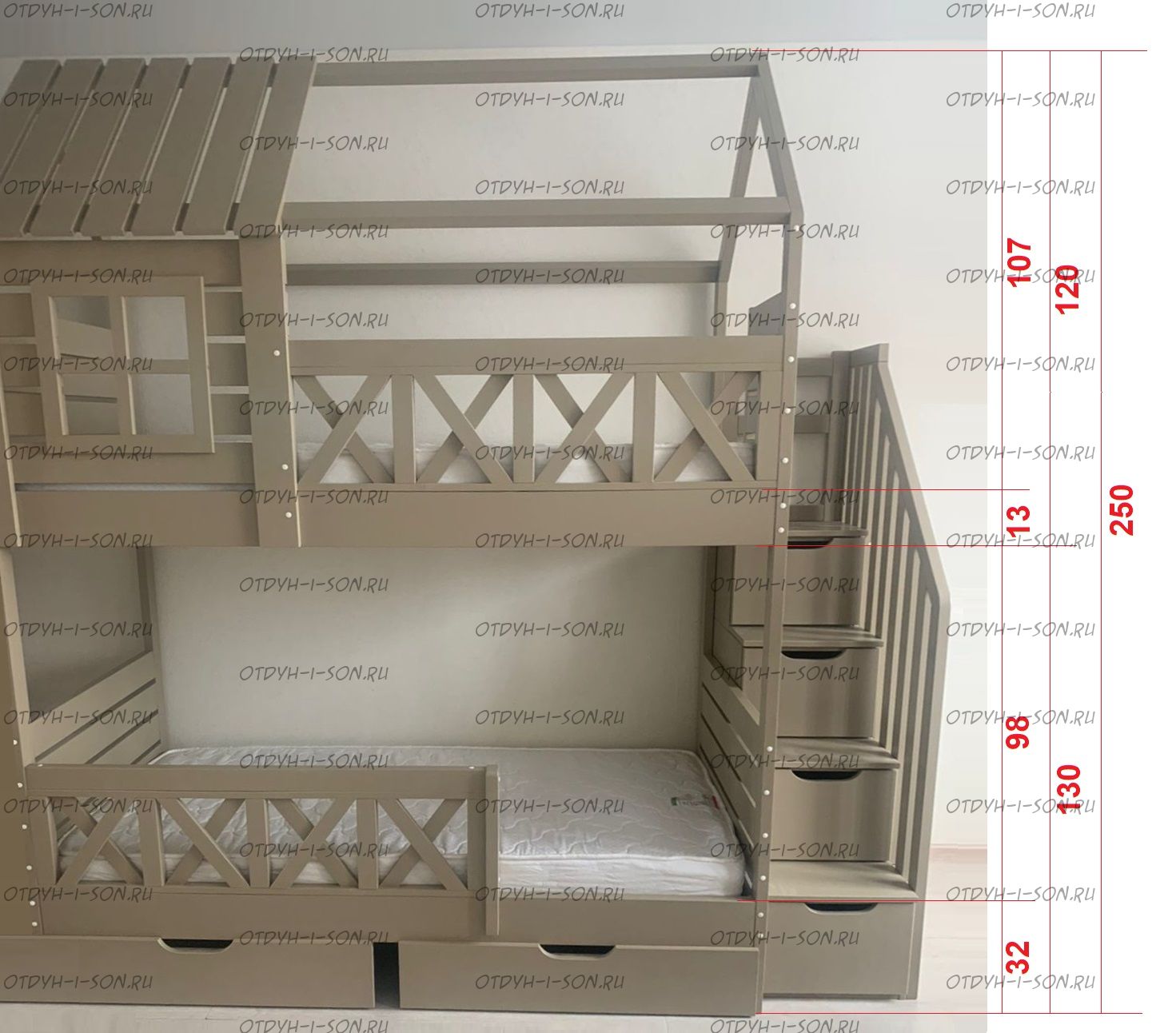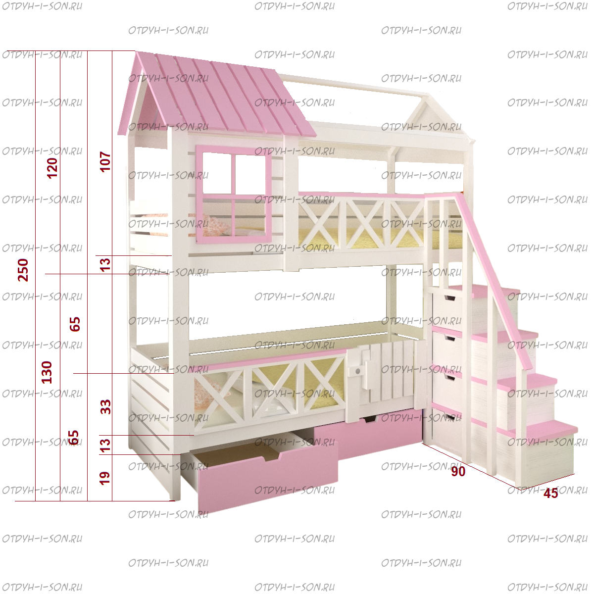 Кровать двухъярусная Домик Standard №34С может быть изготовлена как трехъярусная кровать. Характеристики: Размер спального места верхнего яруса: 70х180, 80х180 см, 80х190 см, 90х190 см., 90х200 см. (и любые другие на Ваш вкус) Размер спального места нижнего яруса: 80х190, 80х200, 90х190, 90х200, 120х190, 120х200, 130х200, 140х190 см. (и любые другие на Ваш вкус) Внешние размеры: Материал: сосна Возможны любые нестандартные размеры Вес кровати: Объем кровати: Цвет: Возможность трансформации в отдельно стоящие кровать чердак и двуспальную кровать; - без матрасов; опорный брус спинок(ножки) - 40х80мм. Внимание: для любой модели кровати возможно увеличение высоты бортиков кровати! Возможно изготовление кровати нестандартных размеров по вашим замерам, доплата за нестандартный размер: - за кровать + 10% от стоимости изделия; Производство Владимирской мебельной фабрики, кровать доставляется напрямую от производителя, самовывоз ограничен.
