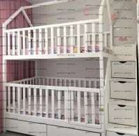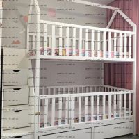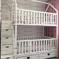 Кровать двухъярусная Домик Малинка Standard №26 может быть изготовлена с кроватью для новорожденного внизу или как трехъярусная кровать, а также в любых размерах и цветах.