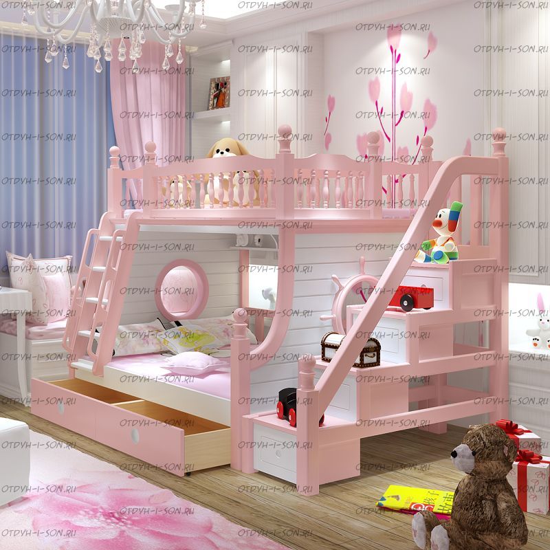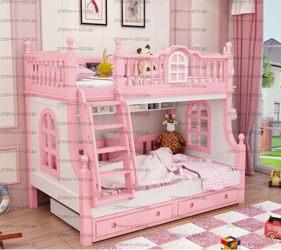 Кровать двухъярусная домик Принцесса Fantasy №IR11 Характеристики: Размер спальных мест: 80Х160 + 90Х160, 80Х170 + 90Х170, 80Х190 + 90Х190, 90Х160 + 100Х160, 90Х180 + 100Х180, 90Х190 + 100Х190 см. и любые другие на Ваш выбор. Внешние габариты кровати: Материалы: массив натурального дерева Устойчивая, надежная двухъярусная конструкция Покрытие: натуральные, сертифицированные краски на водной основе, пригодные для контакта с детьми Выдвижное спальное место, соответствующего размеры спального места Возможно написать имя ребенка на корпусе кровати