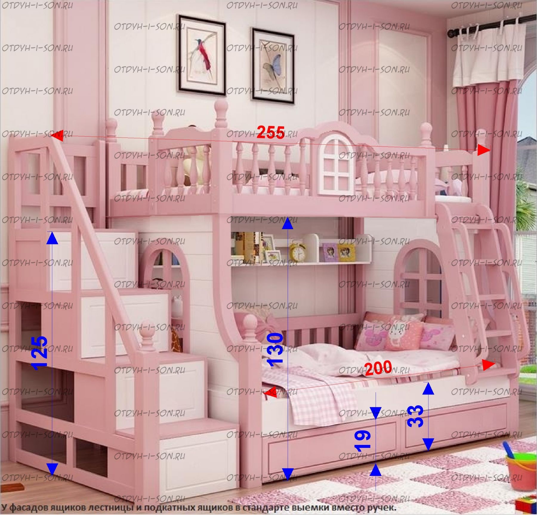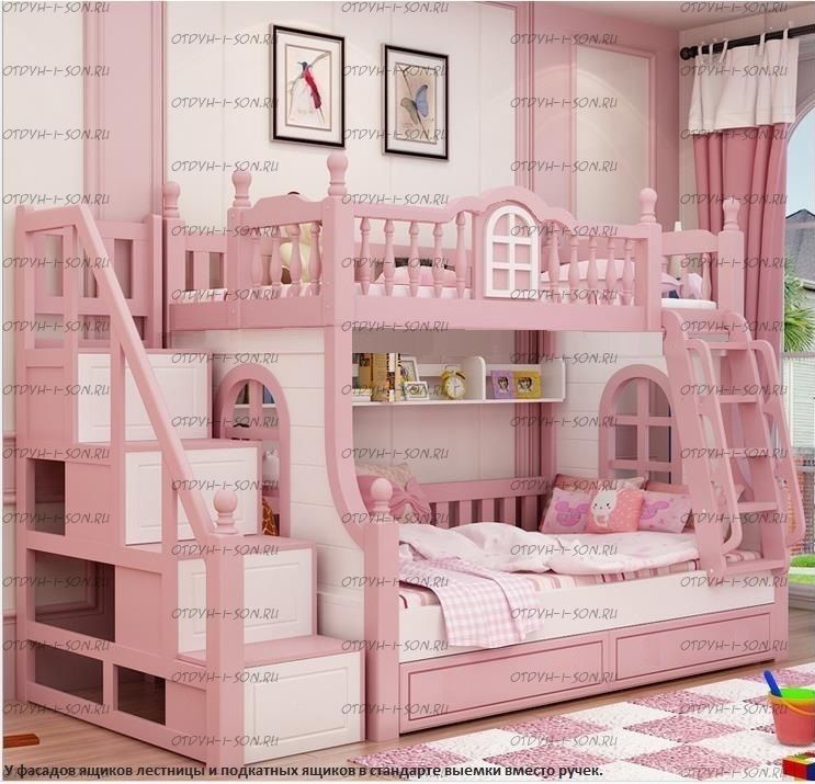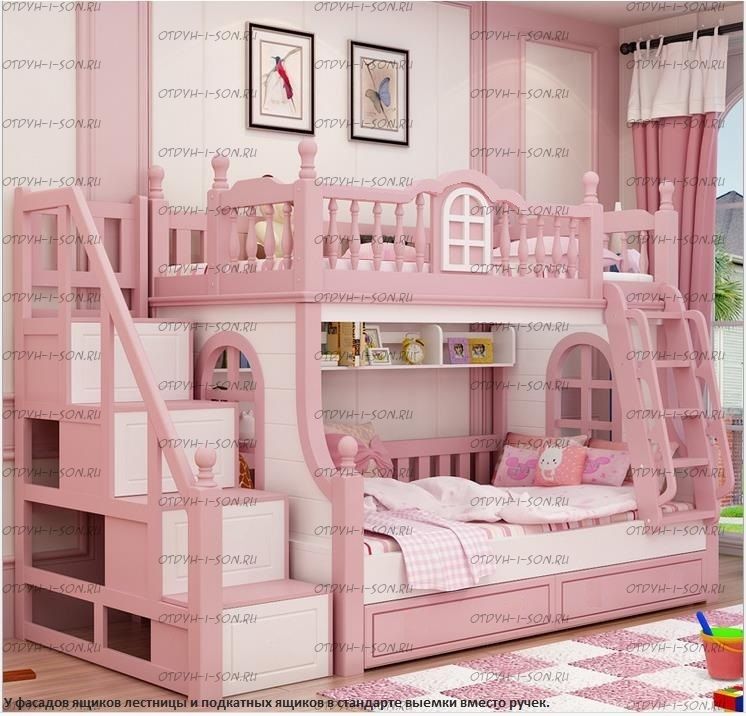 Кровать двухъярусная домик Принцесса Fantasy №IR03 Характеристики: Размер спальных мест: 80Х160 + 90Х160, 80Х170 + 90Х170, 80Х190 + 90Х190, 90Х160 + 100Х160, 90Х180 + 100Х180, 90Х190 + 100Х190 см. и любые другие на Ваш выбор. Внешние габариты кровати: Материалы: массив натурального дерева Устойчивая, надежная двухъярусная конструкция Покрытие: натуральные, сертифицированные краски на водной основе, пригодные для контакта с детьми Выдвижное спальное место, соответствующего размеры спального места Возможно написать имя ребенка на корпусе кровати