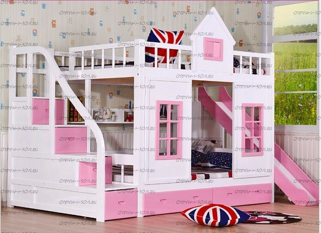 Кровать двухъярусная Принцесса №IR17. Возможно изготовление кровати в виде трансформера (с раскладным нижним спальным местом) Комплектация: Кровать двухъярусная Домик Горка докупается отдельно Характеристики: Размер спальных мест: 80Х160 + 80Х160, 80Х170 + 80Х170, 80Х190 + 80Х190, 90Х160 + 90Х160, 90Х180 + 90Х180, 90Х190 + 90Х190 см. и любые другие на Ваш выбор. Внешние габариты кровати: Материалы: массив натурального дерева Устойчивая, надежная двухъярусная конструкция Покрытие: натуральные, сертифицированные краски на водной основе, пригодные для контакта с детьми Выдвижное спальное место, соответствующего размеры спального места Возможно написать имя ребенка на корпусе кровати