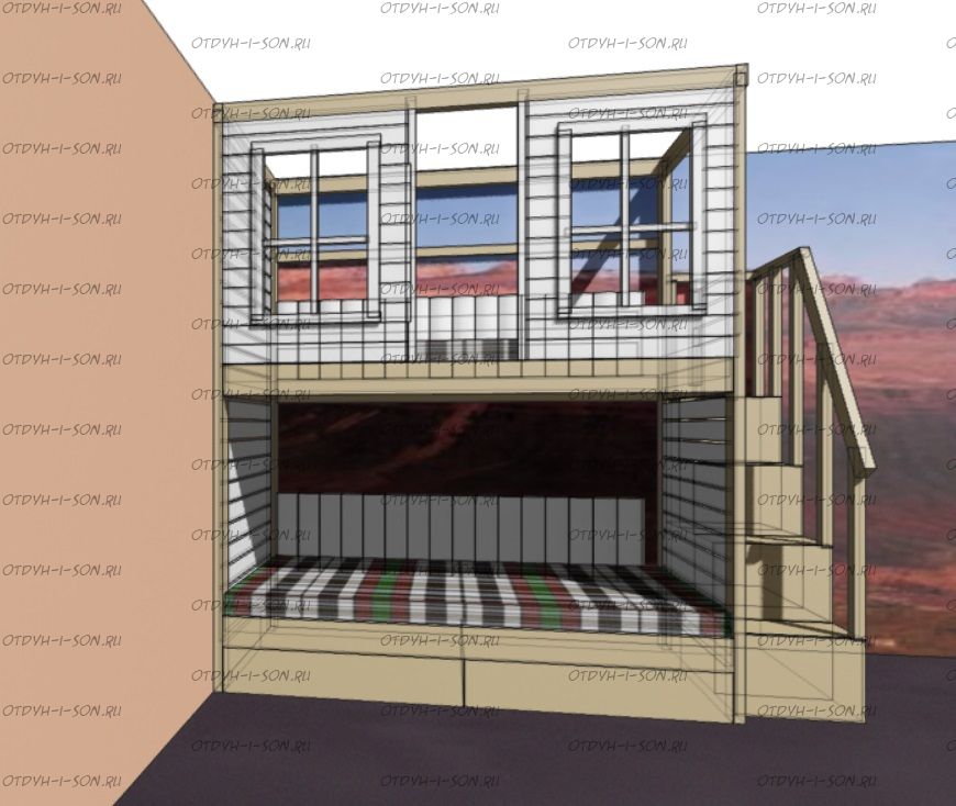 Кровать двухъярусная домик Fantasy Sky №12BASE Характеристики: Размер спальных мест: 80Х160 + 90Х160, 80Х170 + 90Х170, 80Х190 + 90Х190, 90Х160 + 100Х160, 90Х180 + 100Х180, 90Х190 + 100Х190 см. и любые другие на Ваш выбор. Внешние габариты кровати: Материалы: массив натурального дерева Устойчивая, надежная двухъярусная конструкция Покрытие: натуральные, сертифицированные краски на водной основе, пригодные для контакта с детьми Выдвижное спальное место, соответствующего размеры спального места Возможно написать имя ребенка на корпусе кровати Горка докупается отдельно.