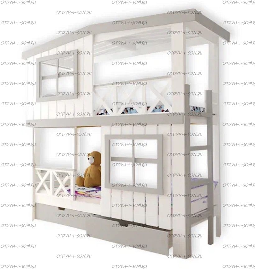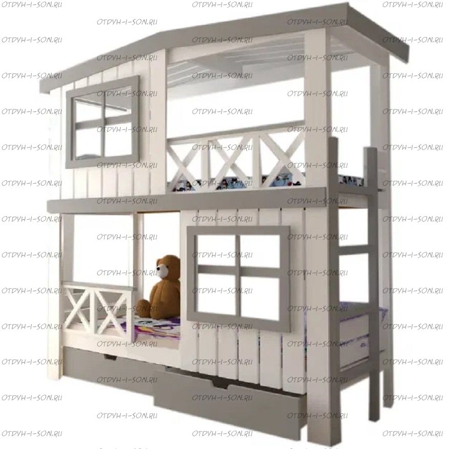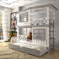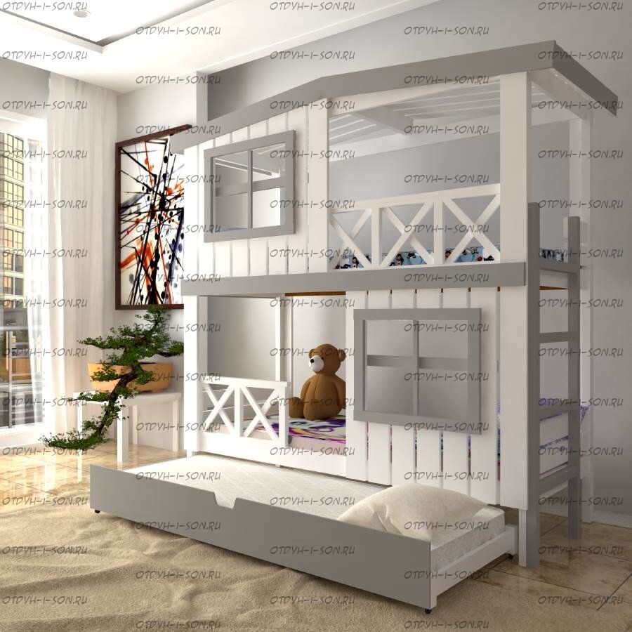 Кровать двухъярусная Домик Roof №20Z с двумя окнами может быть изготовлена как трехъярусная кровать.