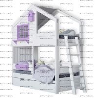 Двухъярусная кровать-домик Roof №8D со скворечником