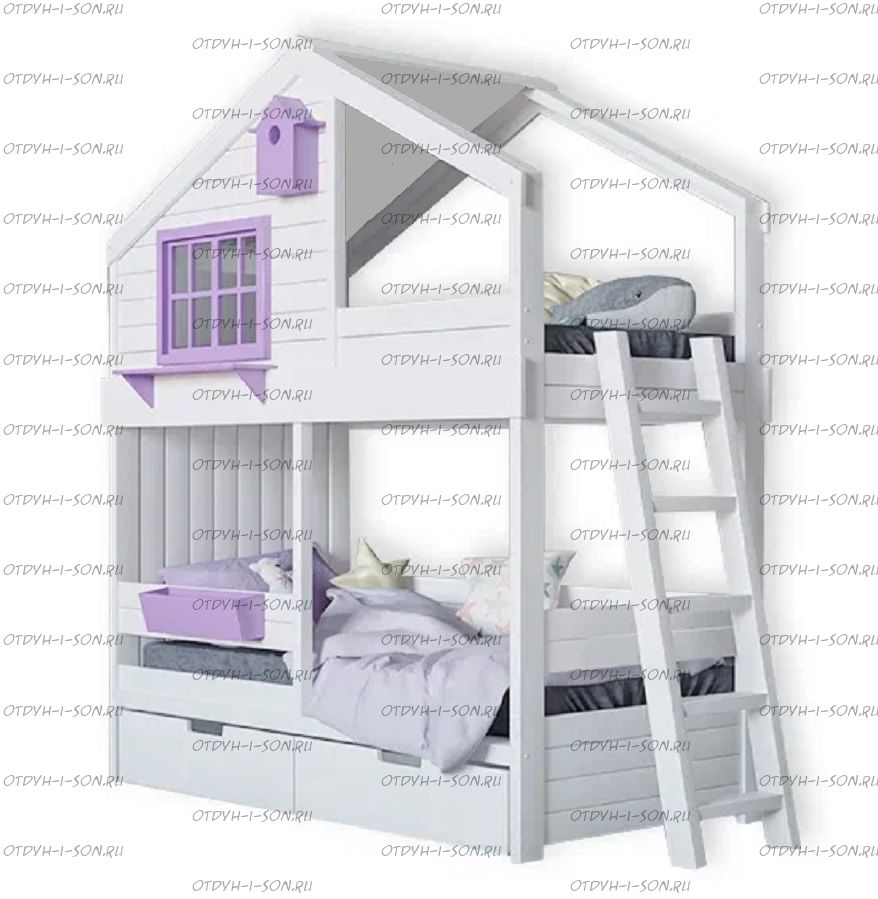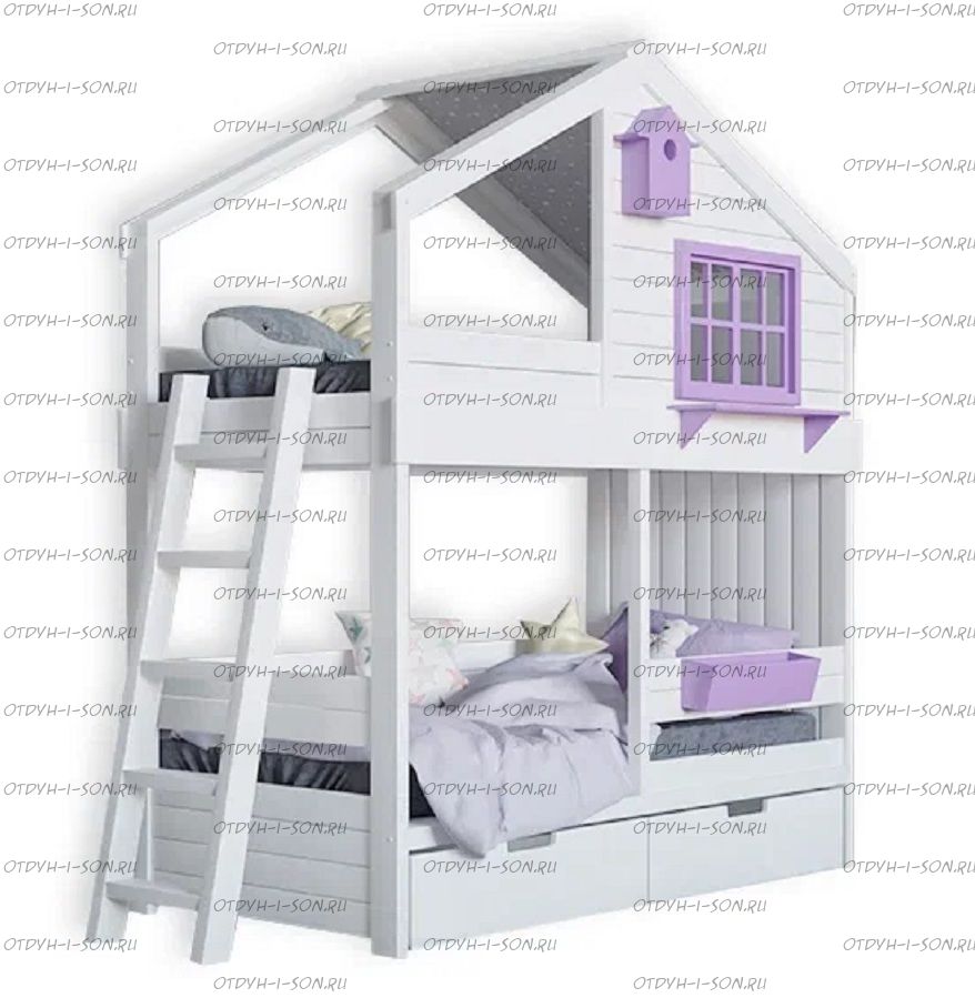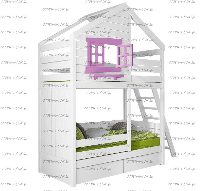 Двухъярусная кровать-домик Roof №8D со скворечником Характеристики: Размер спального места: спальные места одинаковые по размеру Длина спального места: 160 см., 170 см., 180 см., 190 см., 200 см. или любой другой на Ваш выбор Ширина спального места: 70 см., 80 см., 90 см. или любой другой на Ваш выбор Высота кровати: 210 см. Каркас: массив сосны, Брус 40х40 мм. Основание: поперечные брусья массив, ДВП 4-5 мм. Ящики каркас: березовая фанера 12 мм, дно ДВП 4-5 мм, выкатная система (4 колесика) - к кровати не фиксируется Ящики фасад: березовая мебельная фанера 12-16 мм, массив сосны Покрытие: Sayerlack (Италия), Renner (Италия) Внимание: возможно увеличение высоты бортиков кровати! Цвет: орех, бук, венге, груша, дуб, каштан, клен, красное дерево, махагон, ольха, сосна, белый (эмаль), слоновая кость (эмаль)